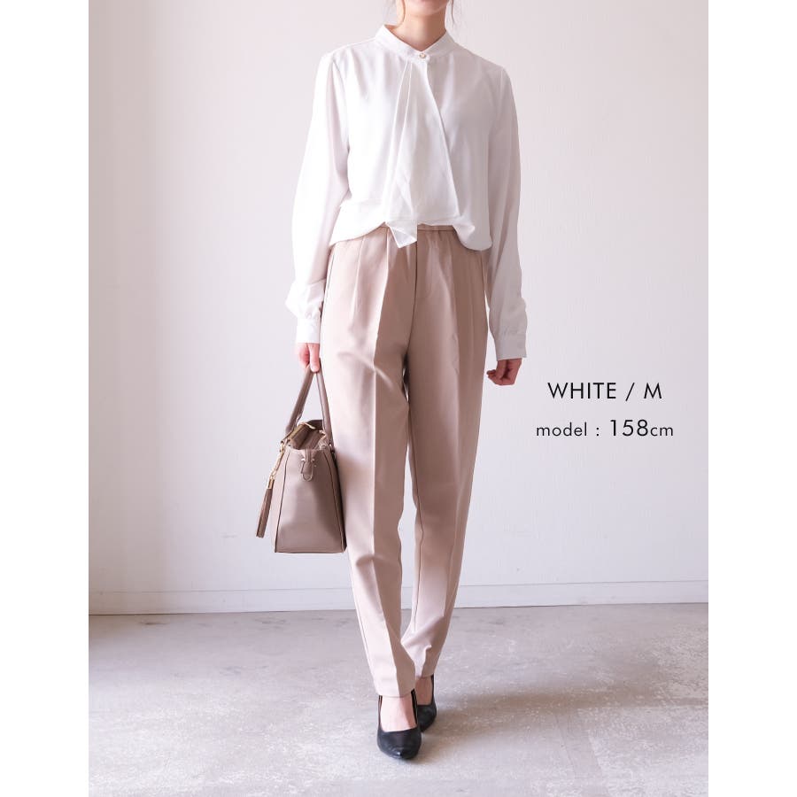 凛とした印象と甘さのバランスが絶妙なスカーフタイブラウス オフィスカジュアル