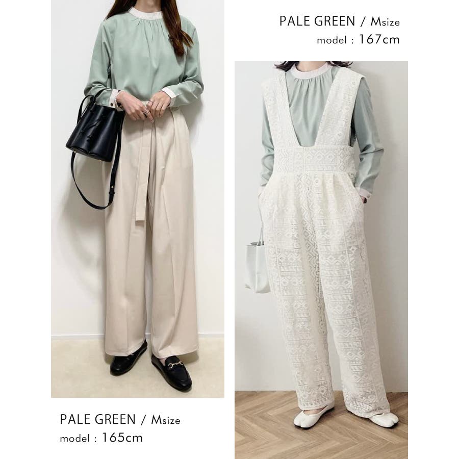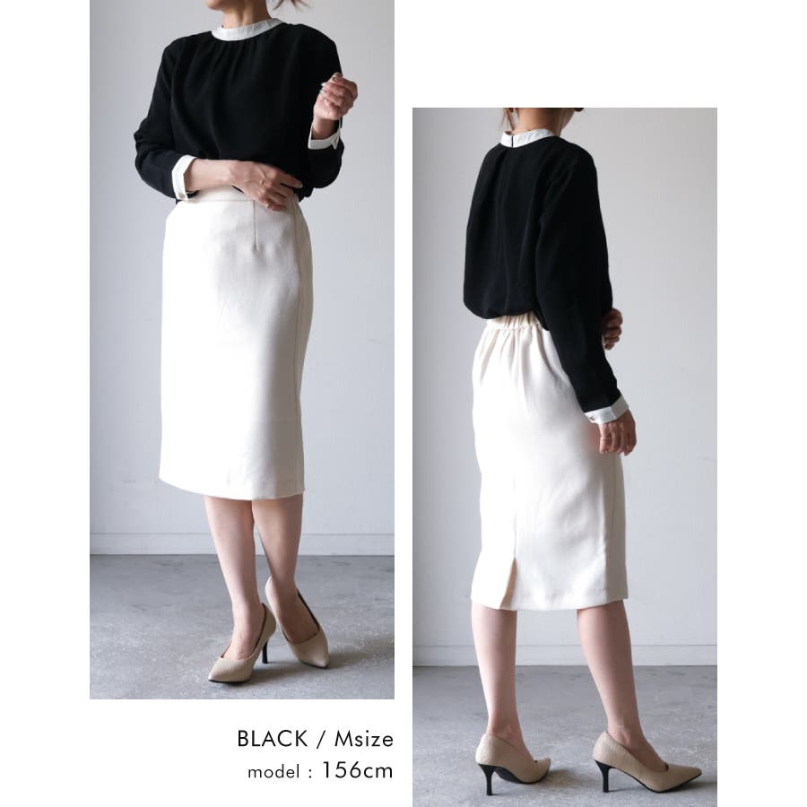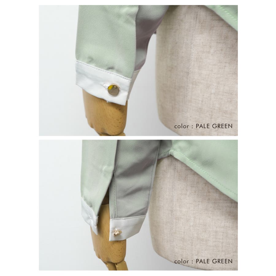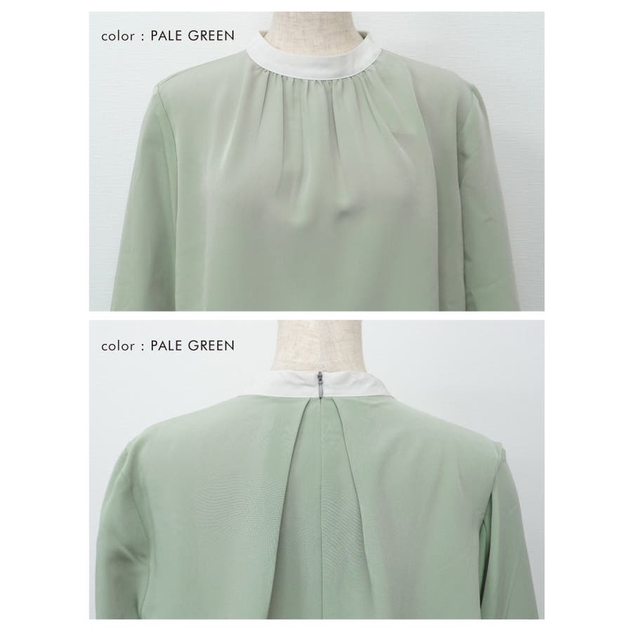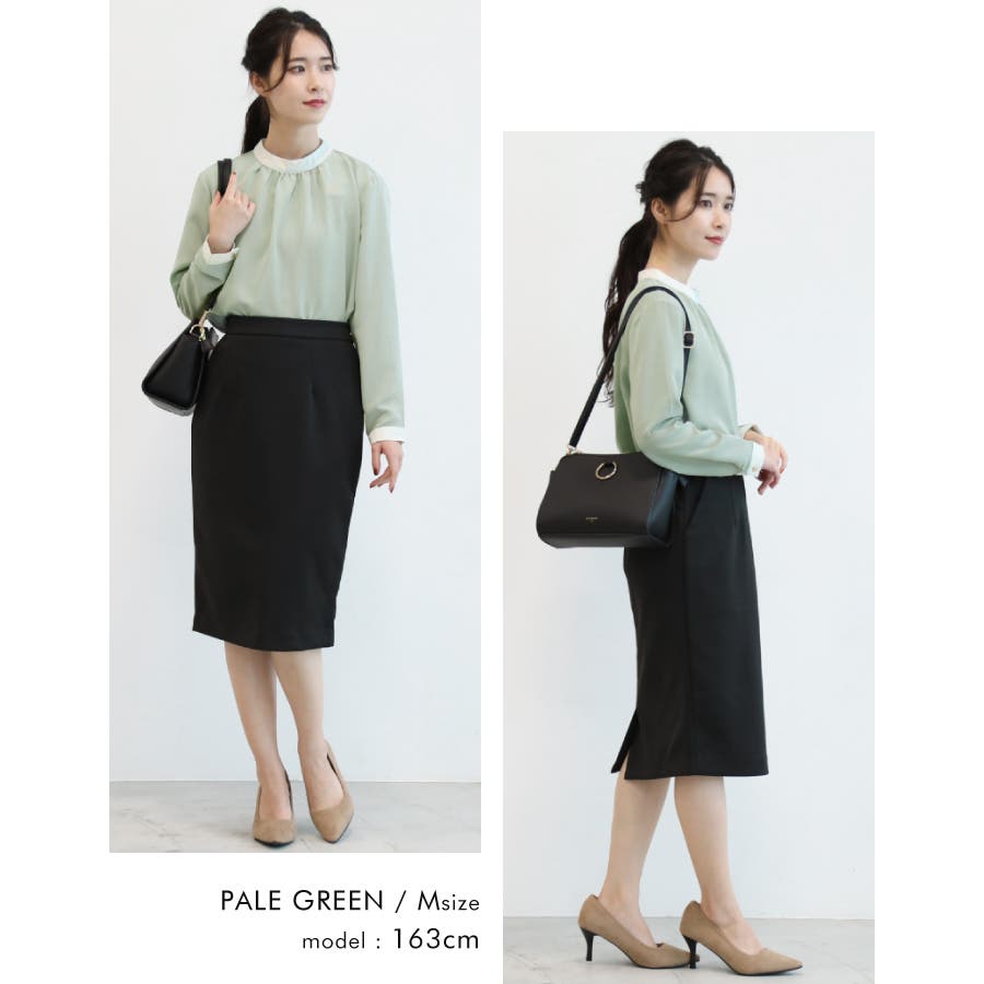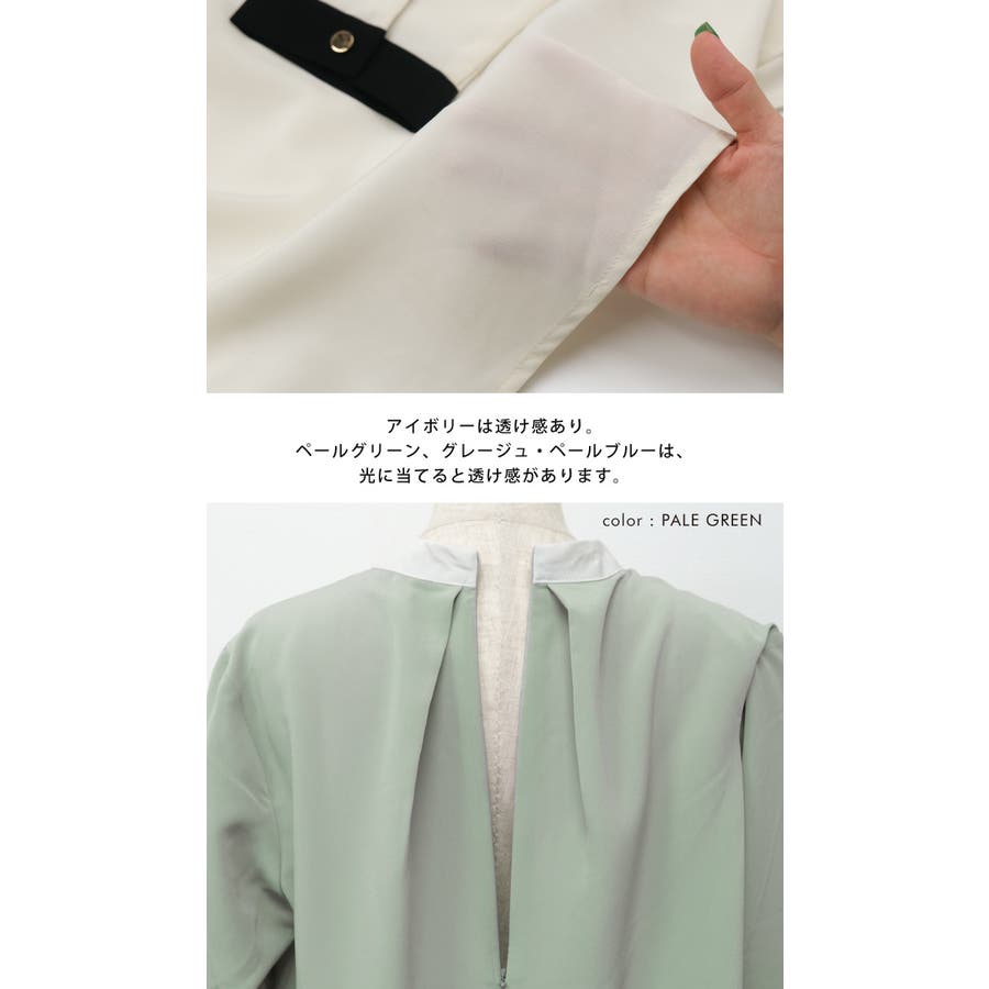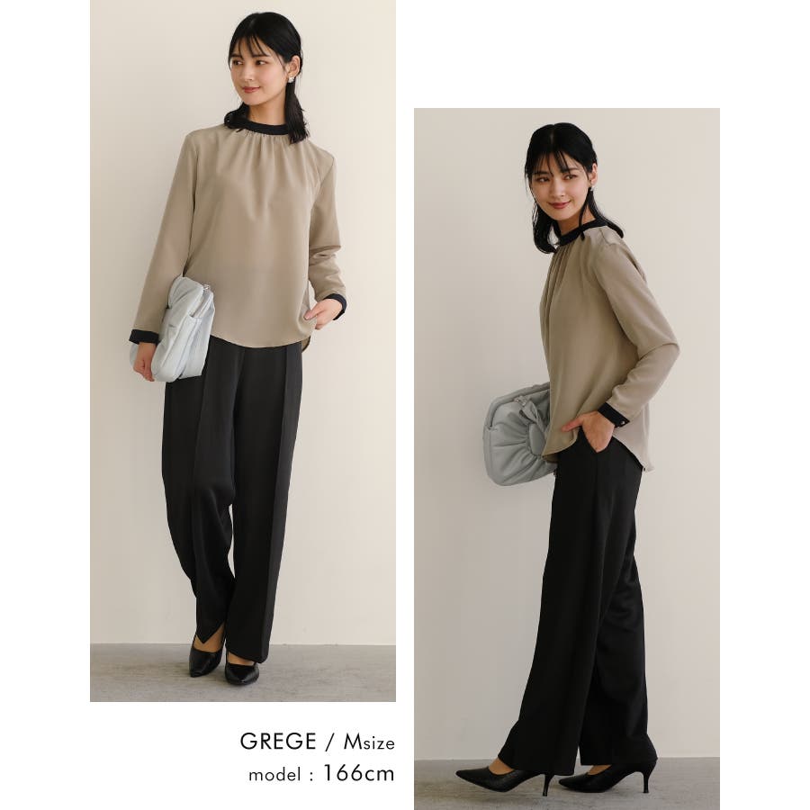 バイカラーギャザーブラウス トップス シャツ レディース 春 秋 長袖 M L バンドカラー プチハイネック スタンドカラー 立ち襟 立ち衿 二の腕カバー シンプル ベーシック きれいめ フェミニン クラシック エレガント ビジネス オフィス オフィスウェア オフィスカジュアル 通勤 上品 清楚 OL