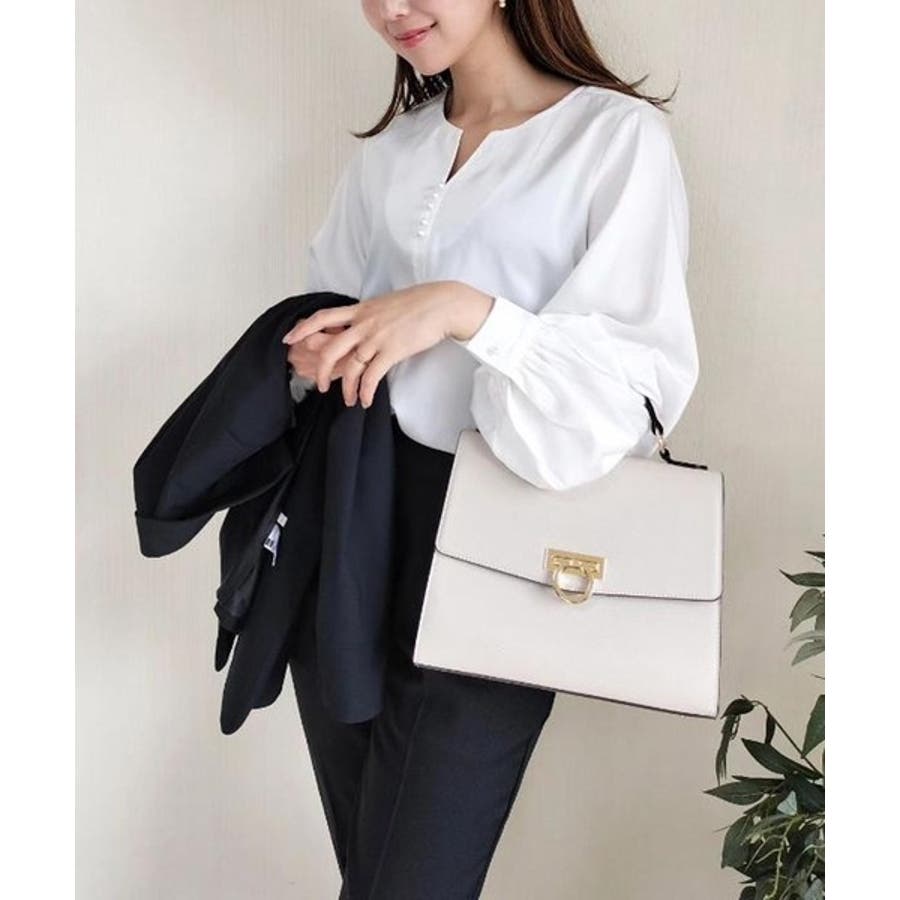 キーネックパールボタンブラウス キーネックブラウス レディース シャツ ブラウス 春 秋 M L 長袖 ノーカラー シンプル ベーシック きれいめ フェミニン クラシック エレガント ビジネス オフィス オフィスウェア オフィスカジュアル 通勤 上品 清楚 OL パール付き