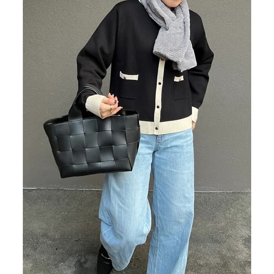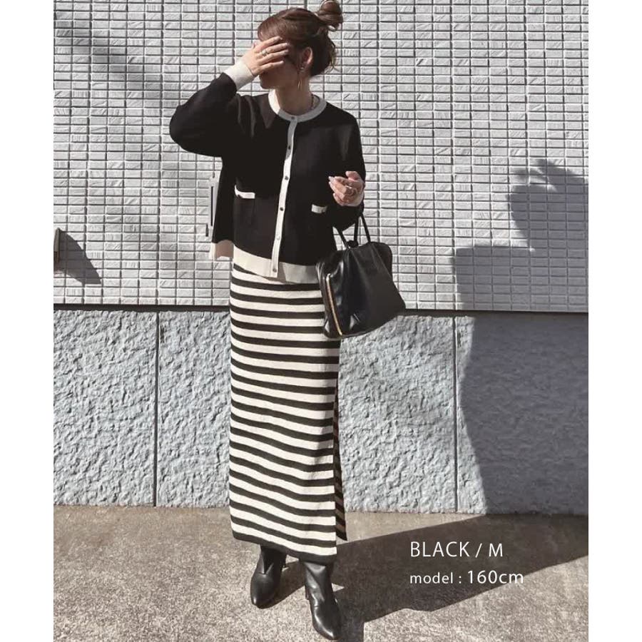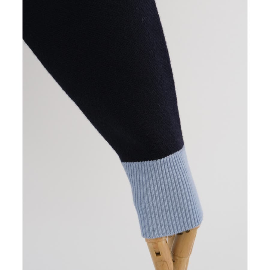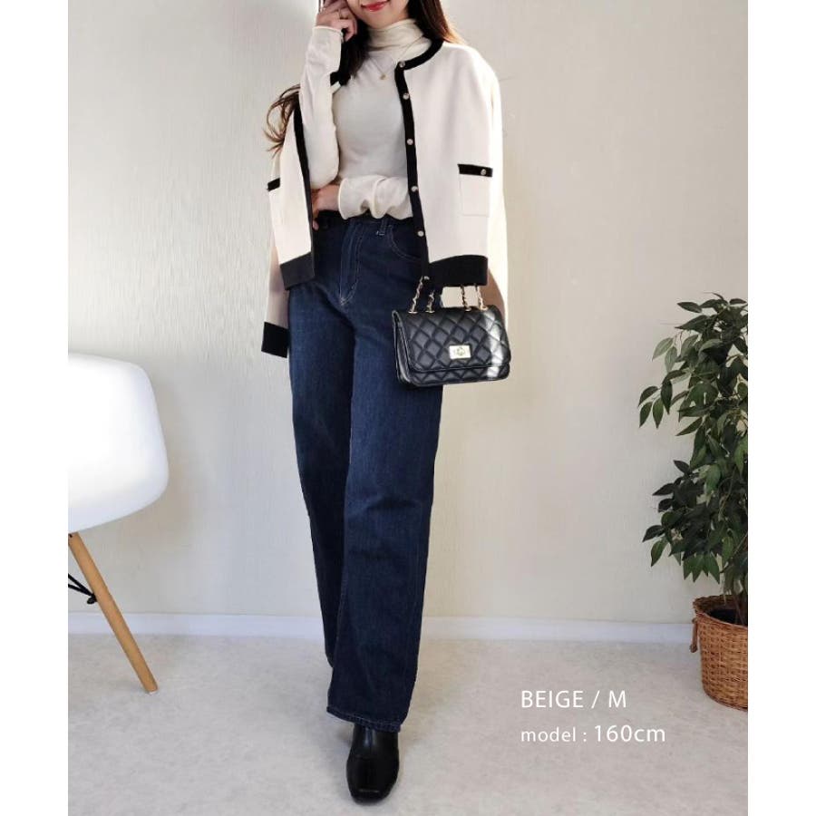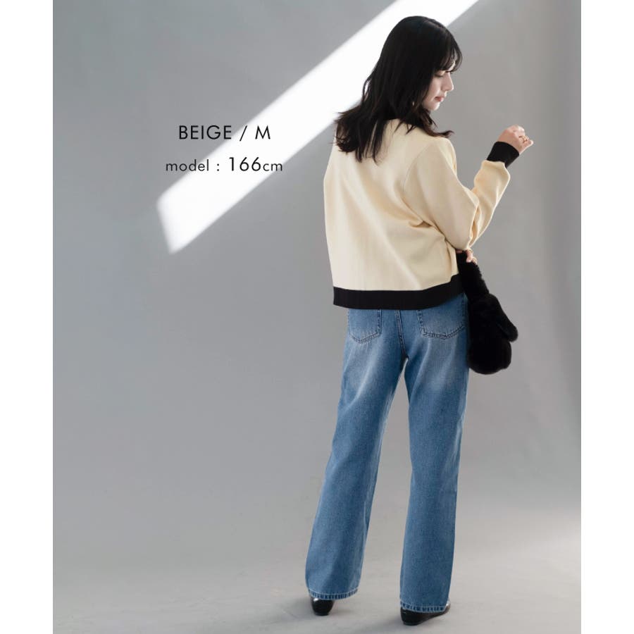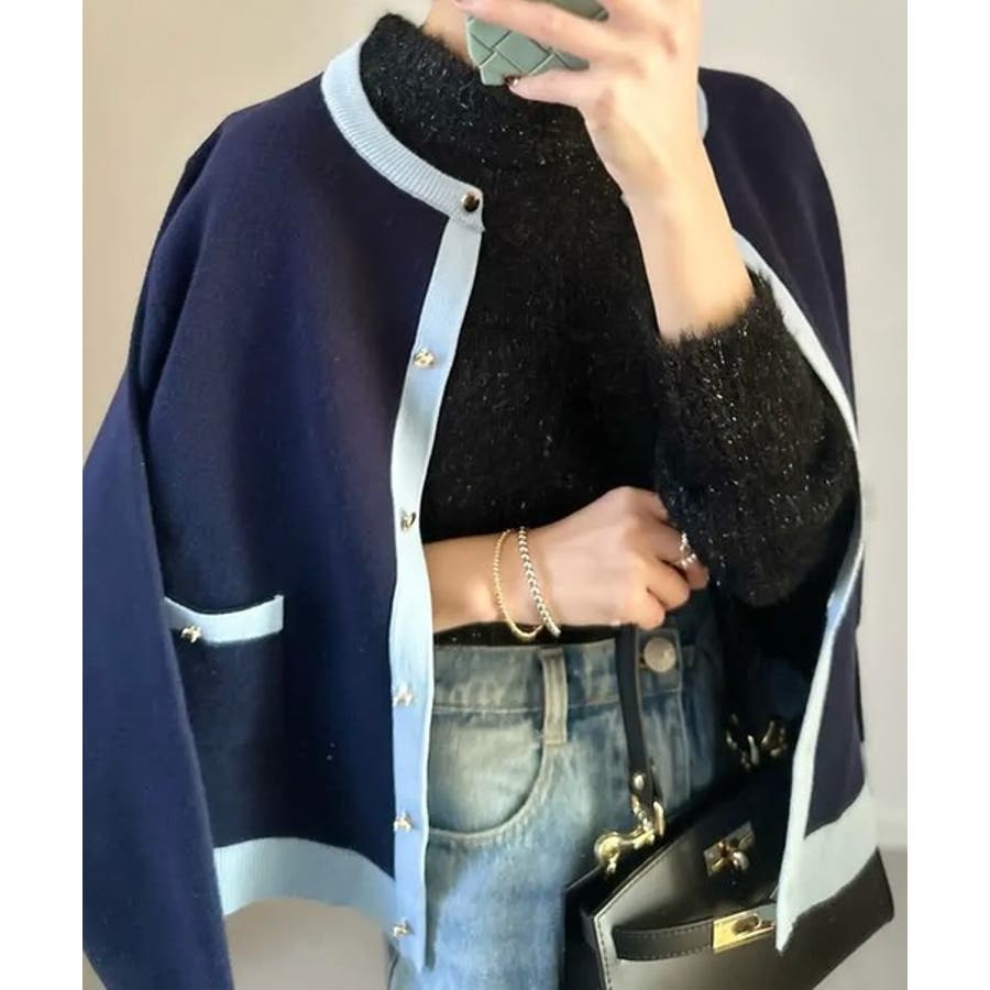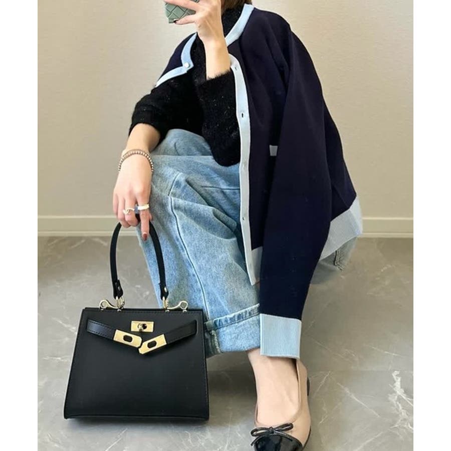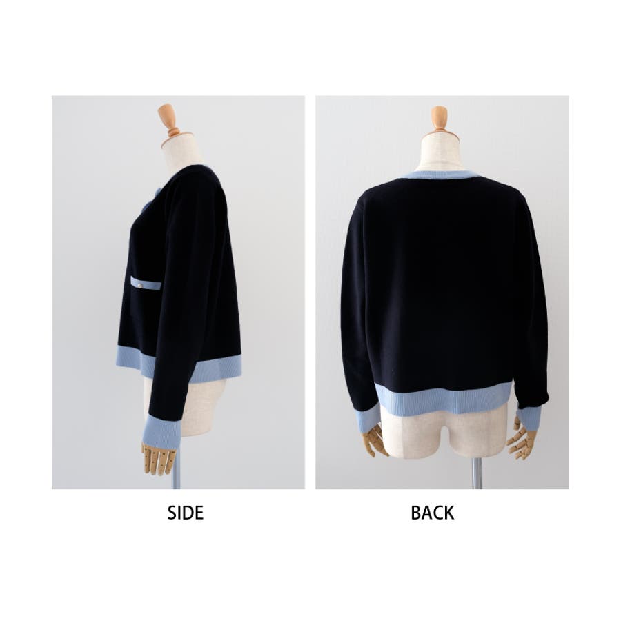 上品な配色デザインと艶のあるゴールドボタンが大人可愛いバイカラーカーディガン