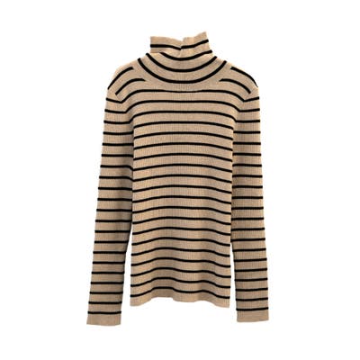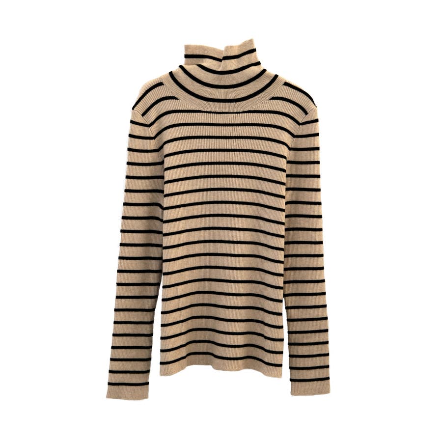 袖口ボタンタートルネックリブニットトップス レディース ハイネック