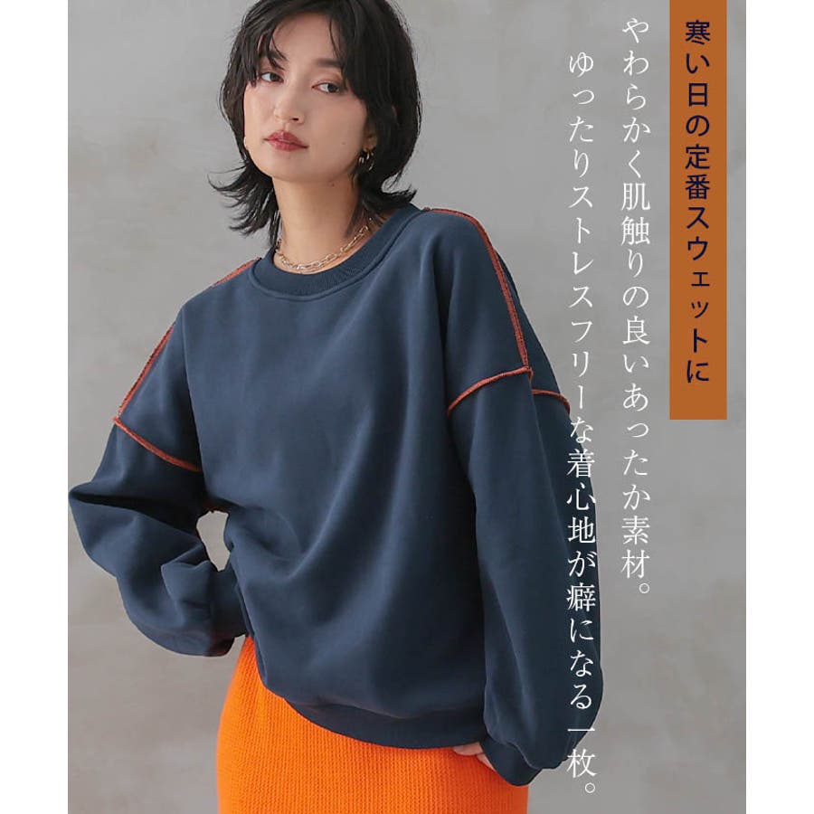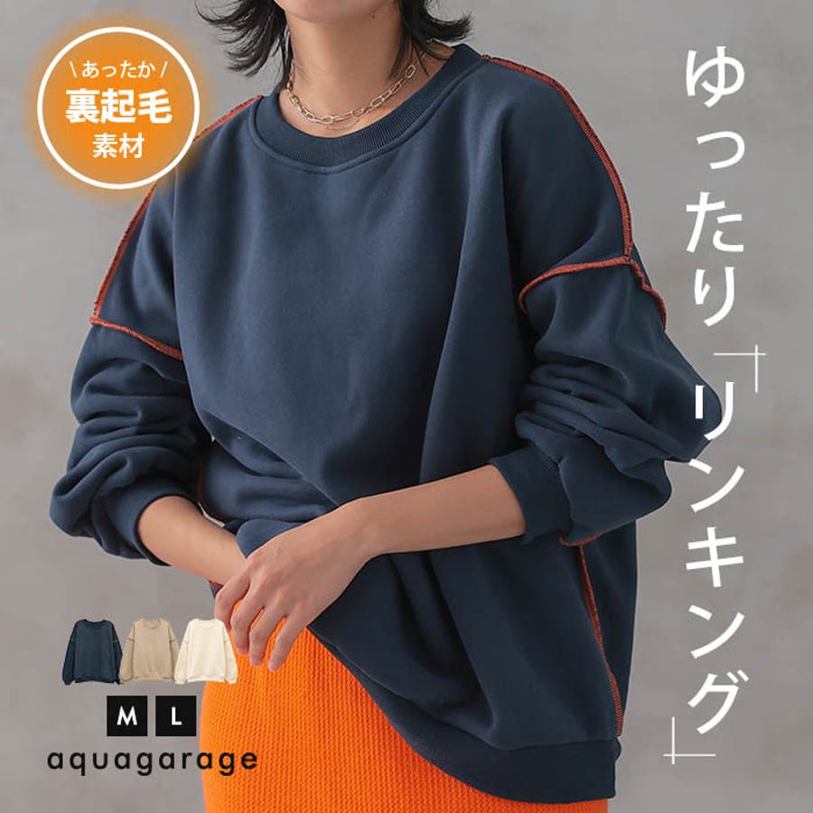 裏起毛だから寒い季節もあったかい♪リンキングデザインスウェットトップス