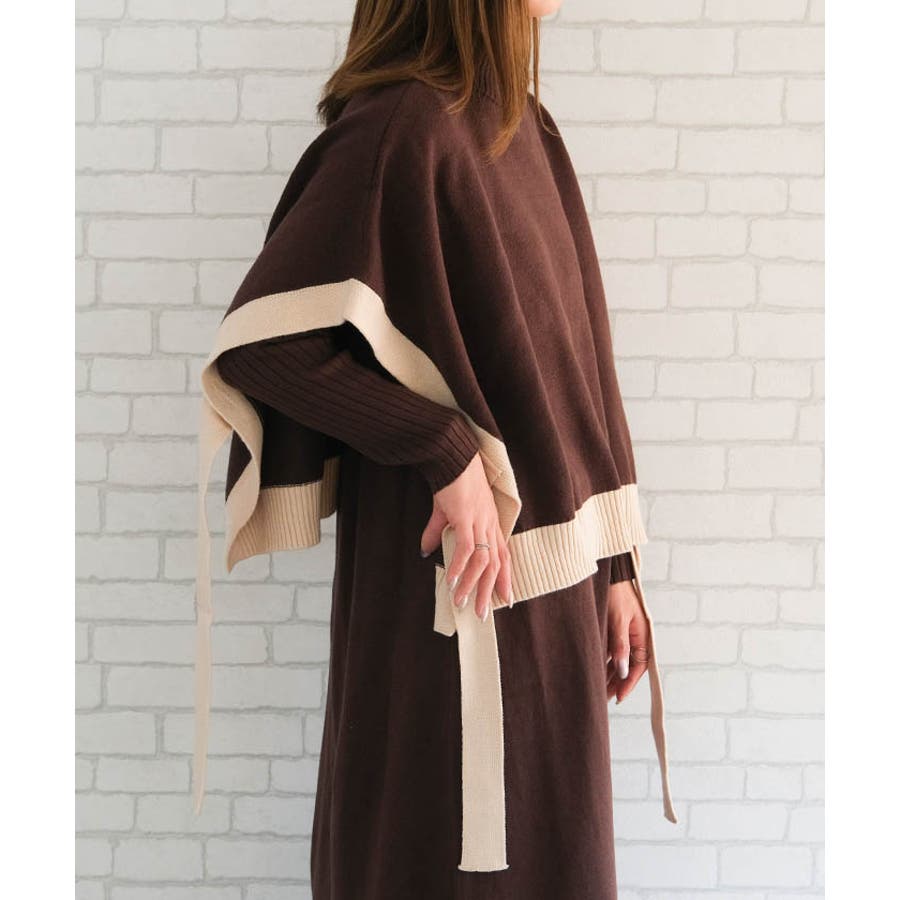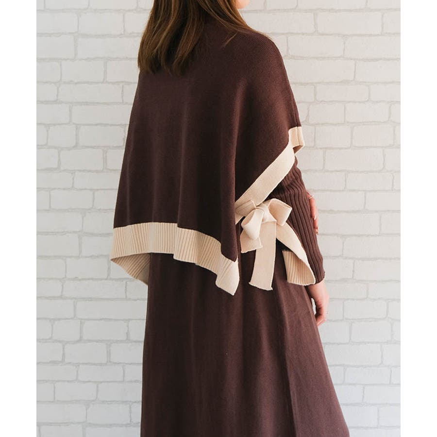 着回し力抜群!サイドリボンケープ付きリブニットワンピース
