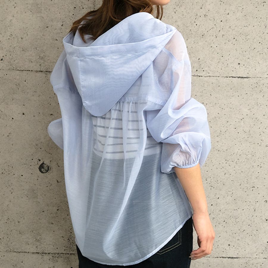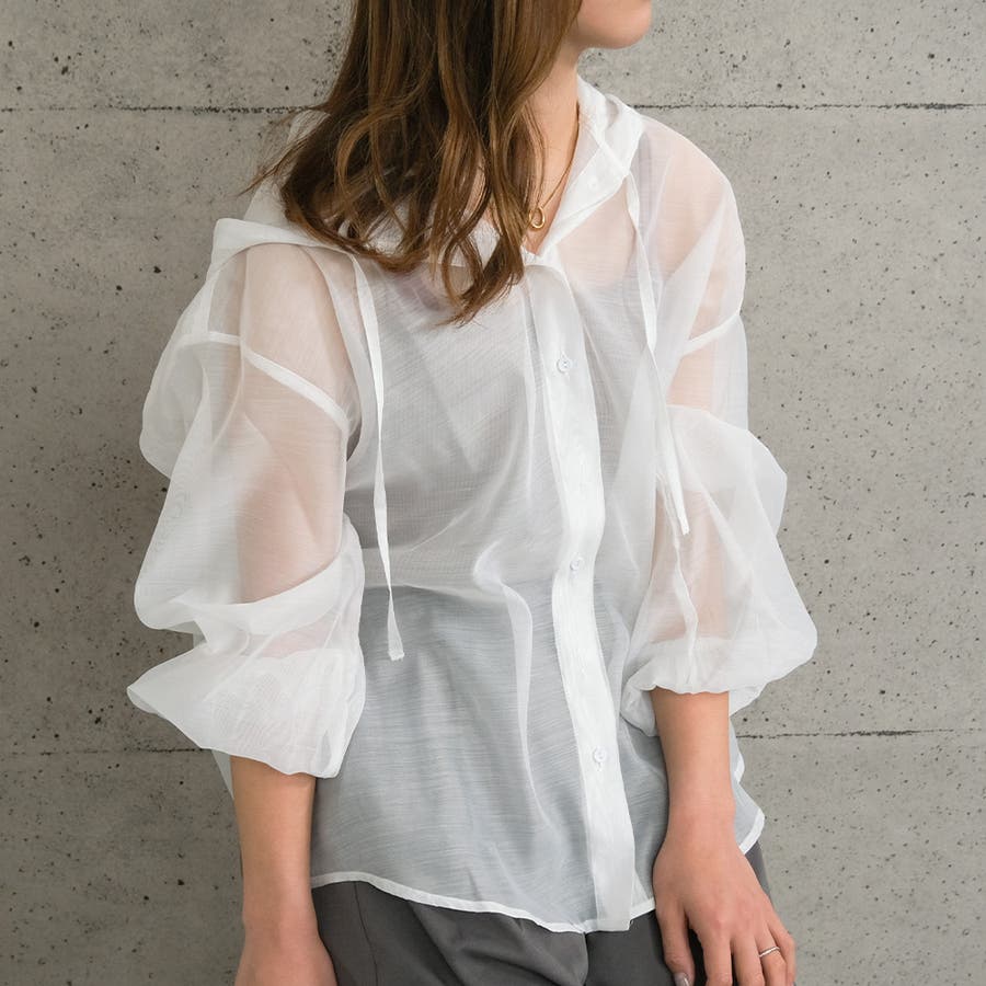 ビッグフードシアーシャツパーカー シアーパーカー レディース トップス シャツ ブラウス ロング丈 長袖 白シャツ 春 夏 秋 レイヤード ビッグシャツ オーバーシャツ ビッグシルエット オーバーサイズ ワイド ゆったり 長め 大きめ BIG 華奢見せ 二の腕カバー 体型カバー 薄手 リラックス リラクシング リゾート 海 レジャー ラッシュガード 紫外線対策 日焼け防止 UVカット リゾート 海 プール 無地 冷房対策 シアー素材 薄手 uvカット uv対策 着る日焼け止め