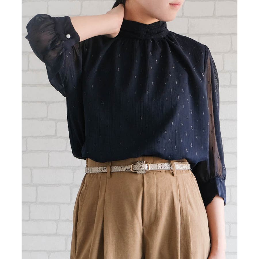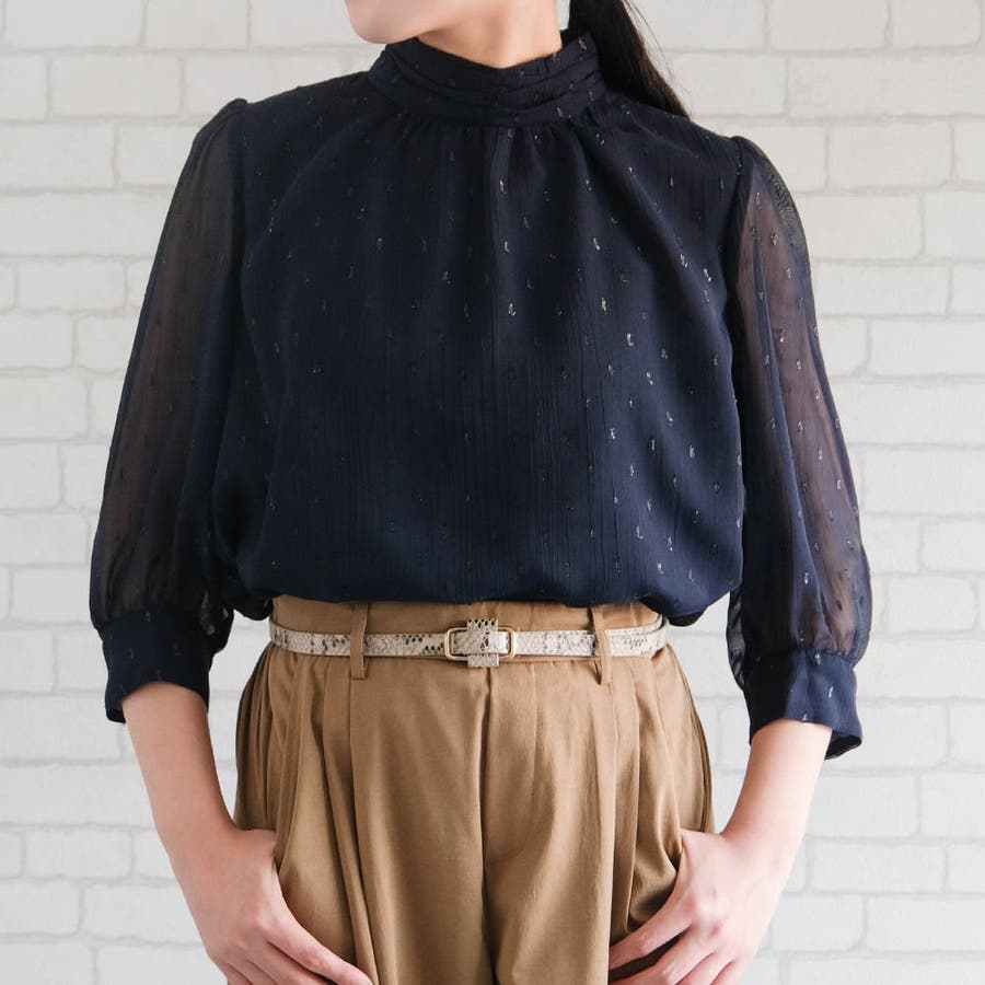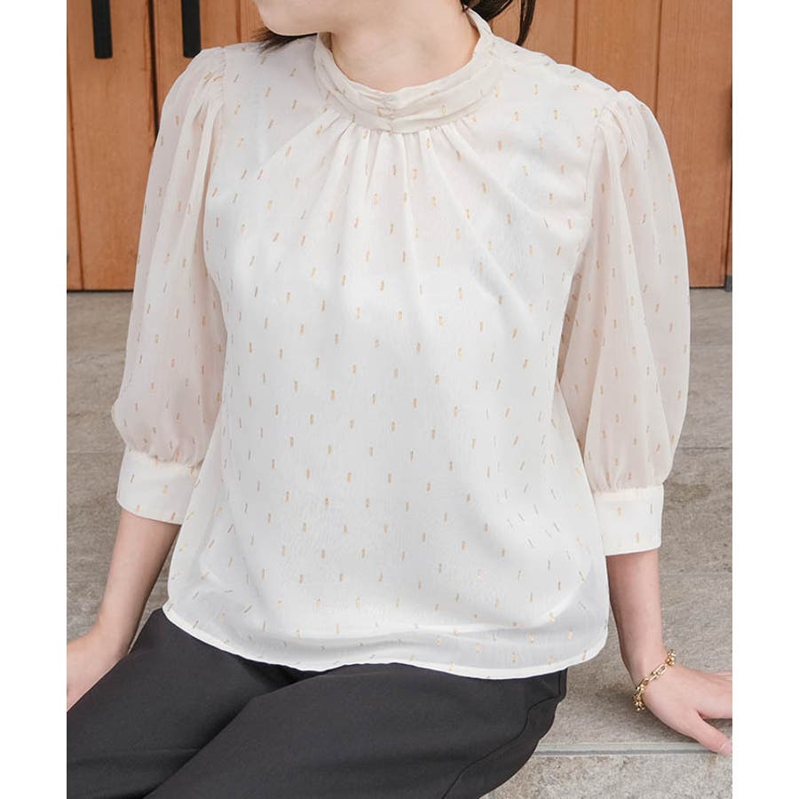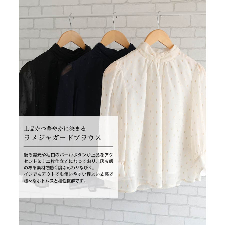 ラメジャガードブラウス トップス シャツ レディース 春 秋 長袖 M L 体型カバー 無地 ドット カジュアル きれいめ フェミニン 大人 可愛い シンプル ベーシック クラシック エレガント プルオーバー ビジネス オフィスウェア オフィスカジュアル 通勤 上品 清楚 薄手 OL おしゃれ 大きいサイズ レイヤード フォーマル