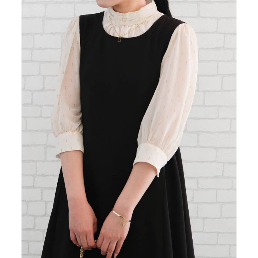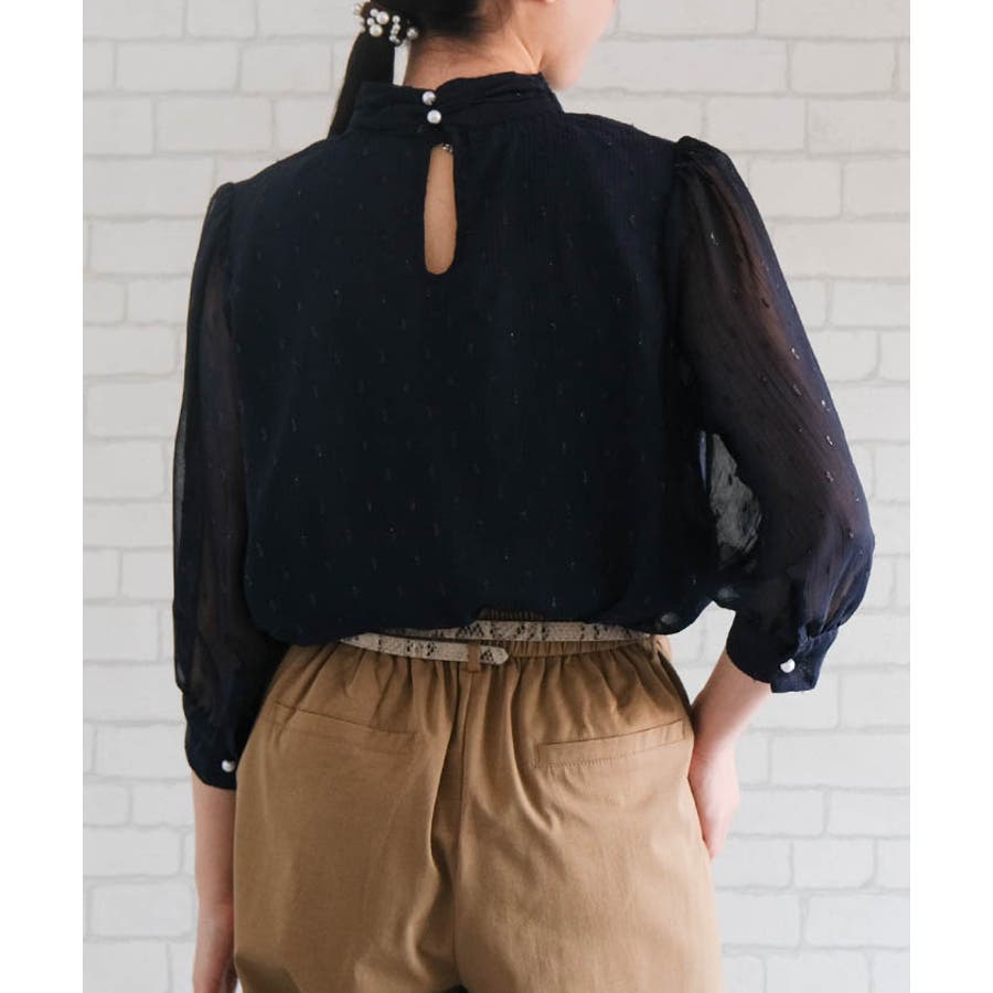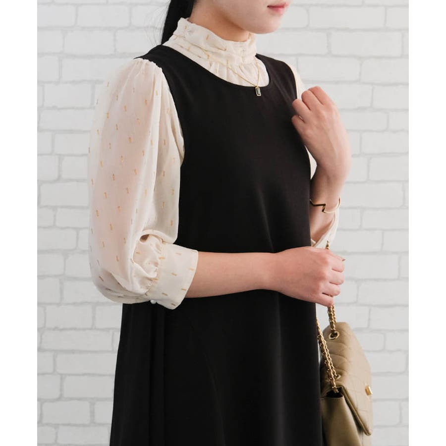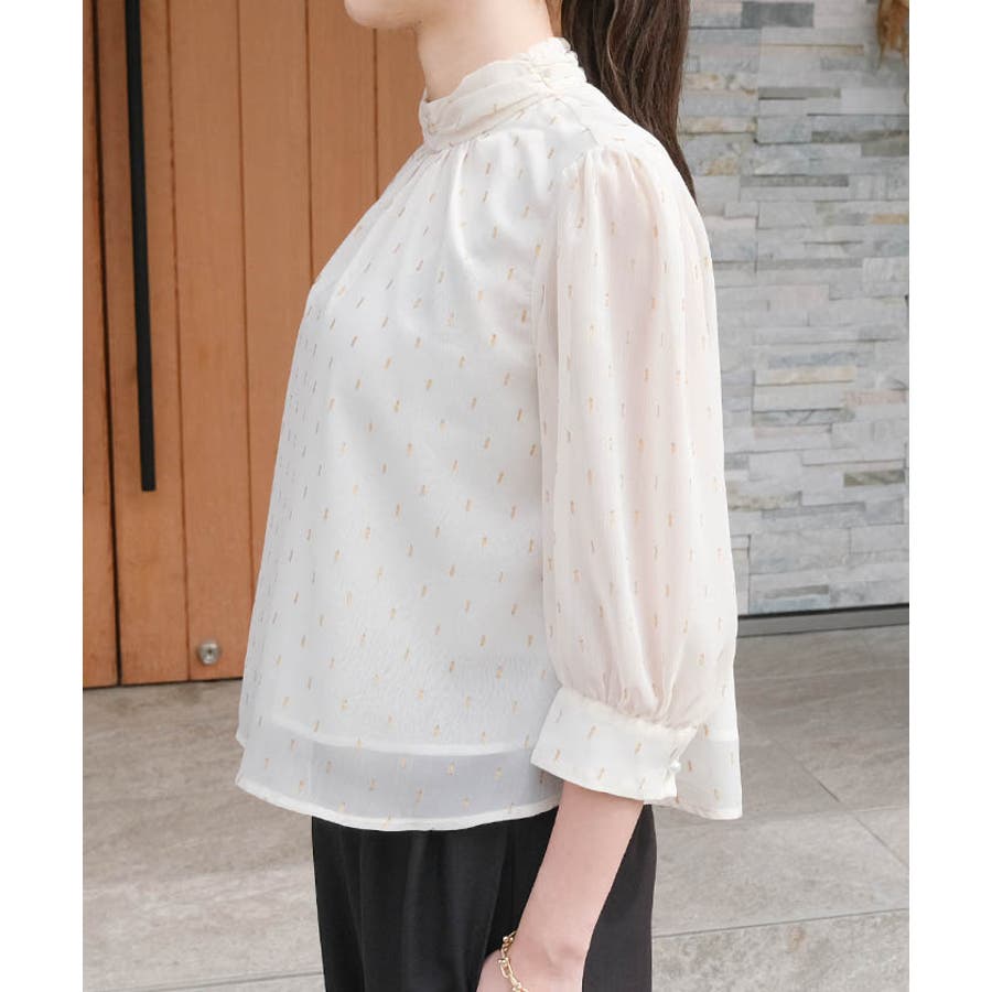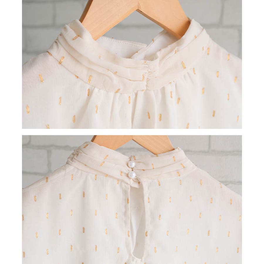 ラメジャガードブラウス トップス シャツ レディース 春 秋 長袖 M L 体型カバー 無地 ドット カジュアル きれいめ フェミニン 大人 可愛い シンプル ベーシック クラシック エレガント プルオーバー ビジネス オフィスウェア オフィスカジュアル 通勤 上品 清楚 薄手 OL おしゃれ 大きいサイズ レイヤード フォーマル