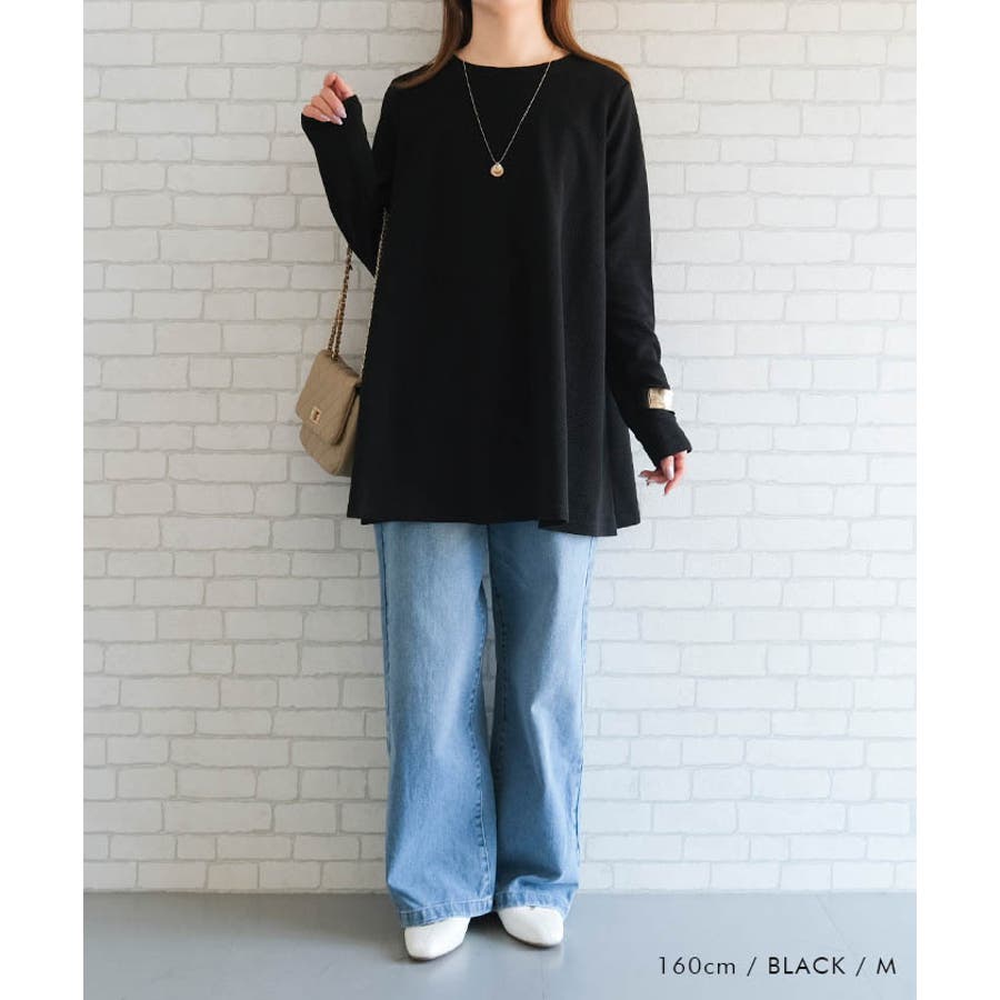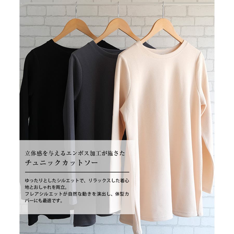 エンボスチュニックカットソー 春 秋 冬 M L レディース