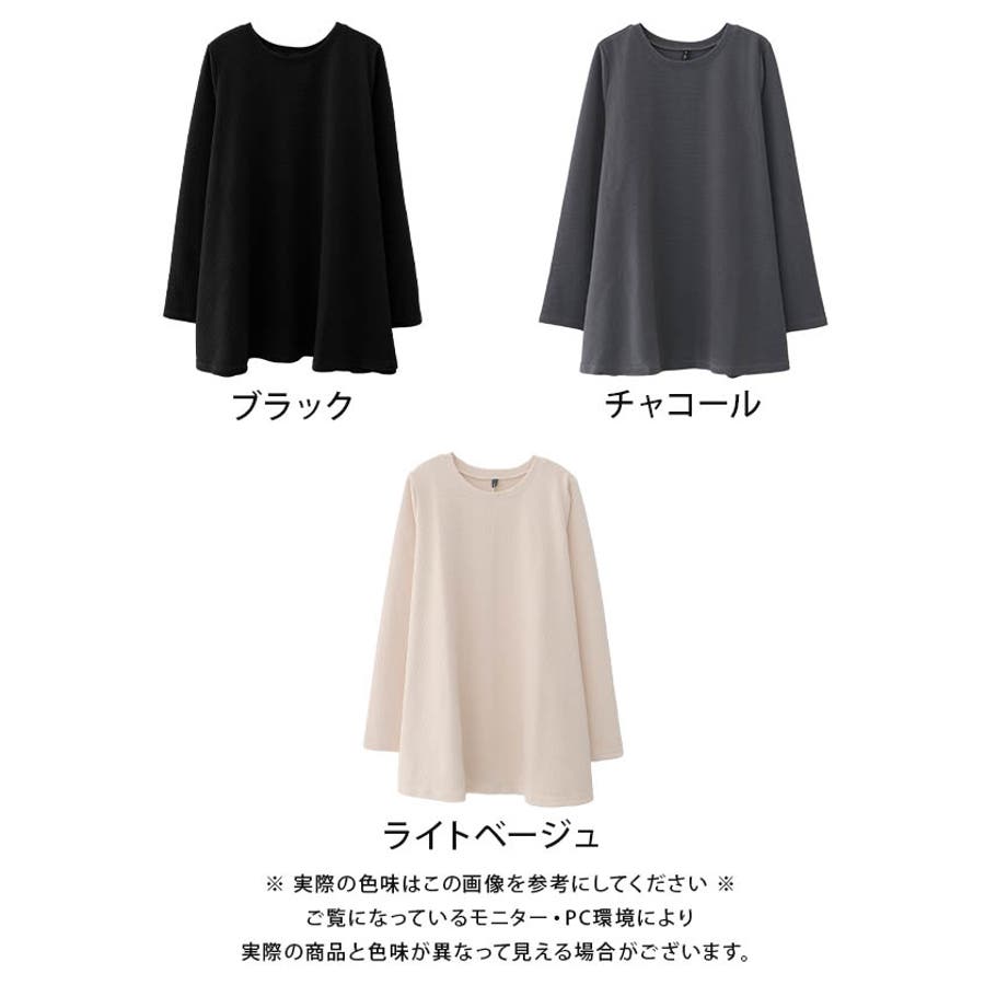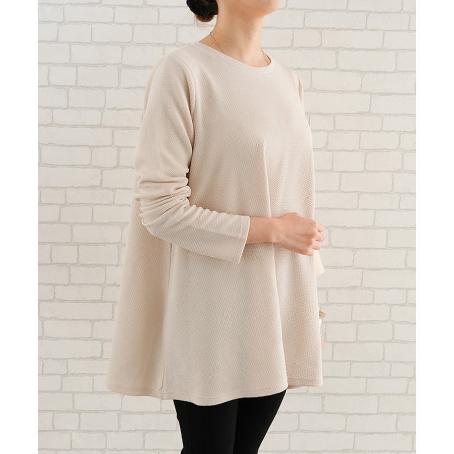 エンボスチュニックカットソー チュニック 袖フリル レディース 秋 冬 長袖 おしゃれ 厚手 ゆったり 大きいサイズ チュニック ルームウェア ワンマイルウェア 部屋着 プルオーバー