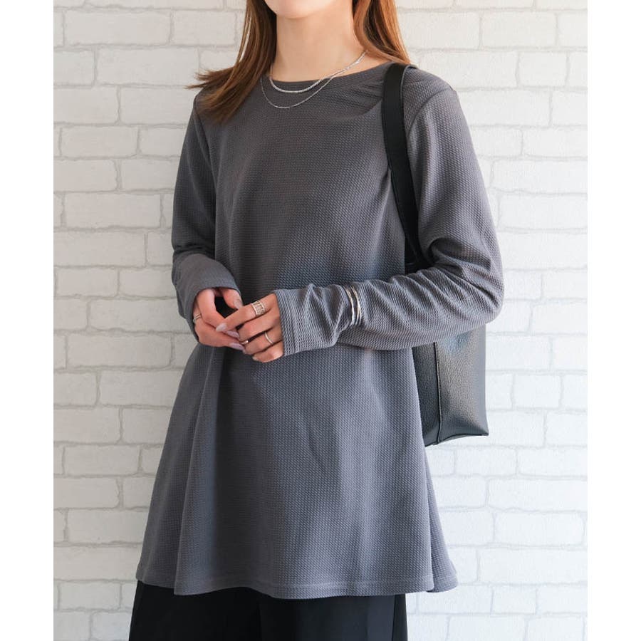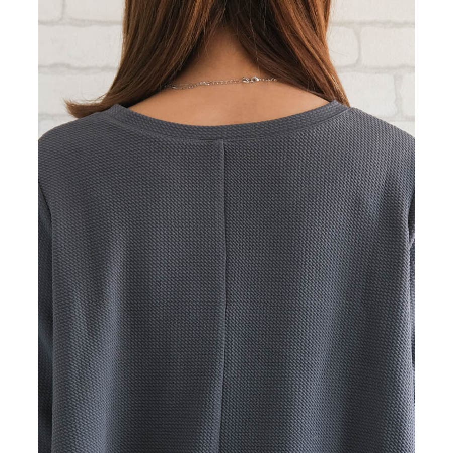 立体感を与えるエンボス加工が施さたチュニックカットソー