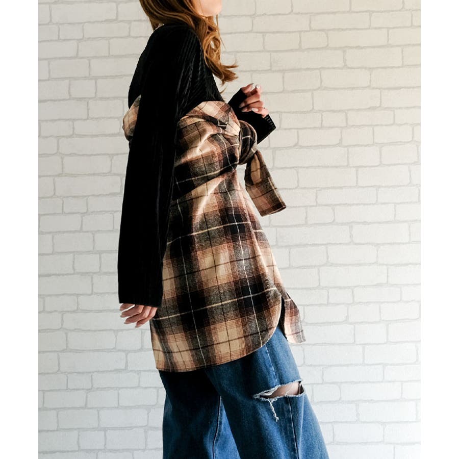 チェックロングシャツ 秋 冬 レディース チェック ロング シャツメール