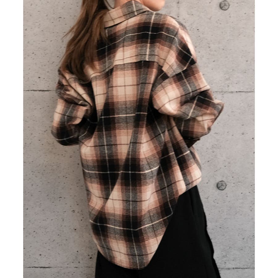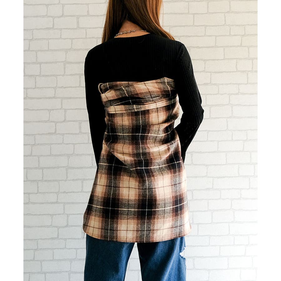 ・チェック柄ロングシャツ