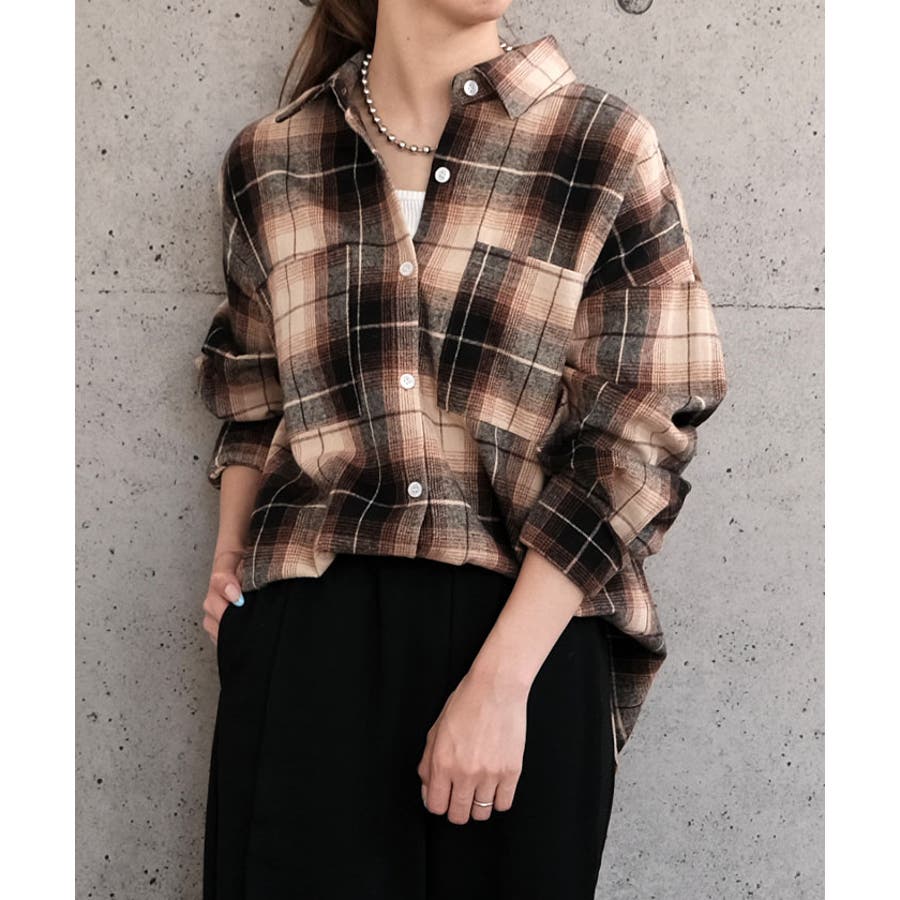チェックロングシャツ シャツ レディース トップス 春 秋 冬 M シンプル ベーシック 二の腕カバー 羽織り カジュアル レイヤード 体型カバー ビッグシャツ オーバーシャツ ビッグシルエット オーバーサイズ ワイド ゆったり ドロップショルダー ロングガウン 長め コーディガン アウター 羽織り ライトアウター 大きめ BIG 華奢見せ