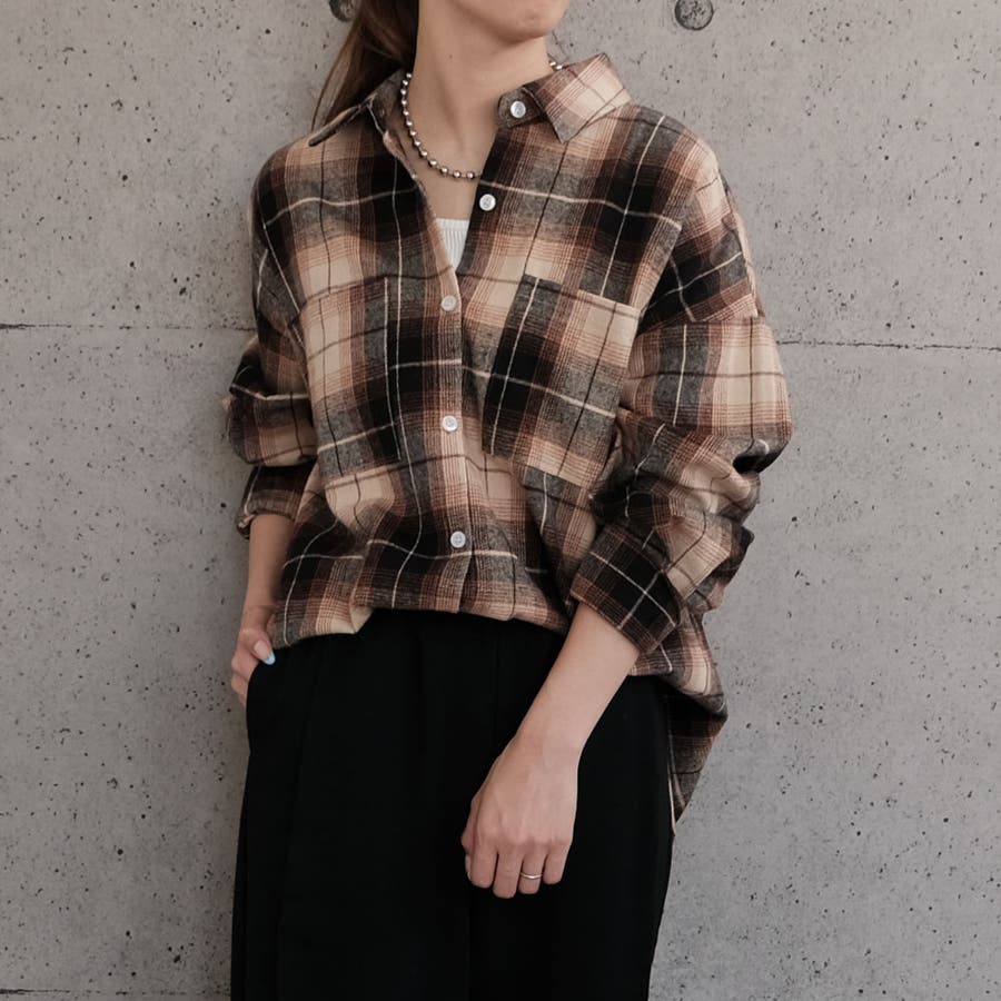 落ち着いた色合いのチェック柄は派手すぎず、大人っぽく着こなせるのもポイントです。