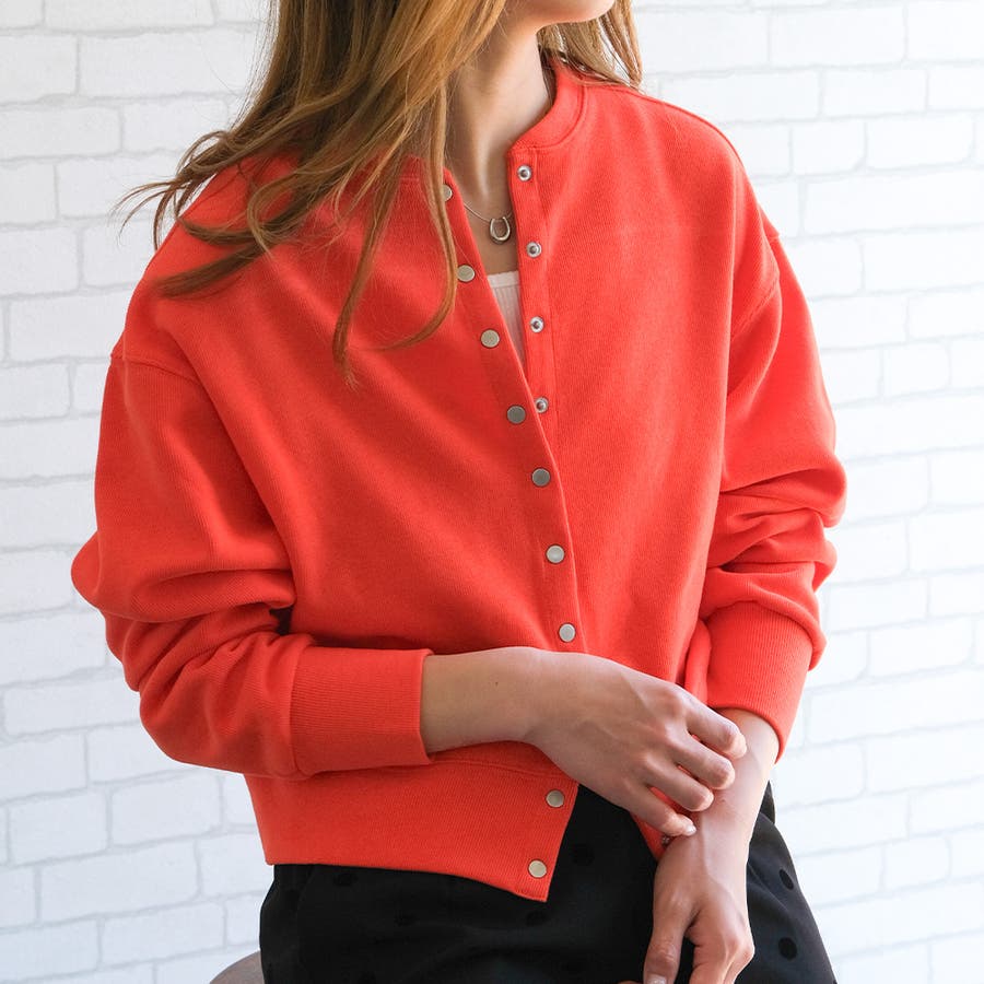 フロントに並ぶスナップボタンが程よいアクセントとなり、着こなしに大人っぽさをプラスしてくれます。