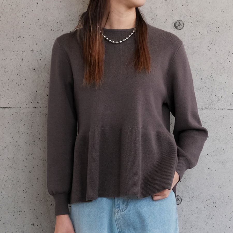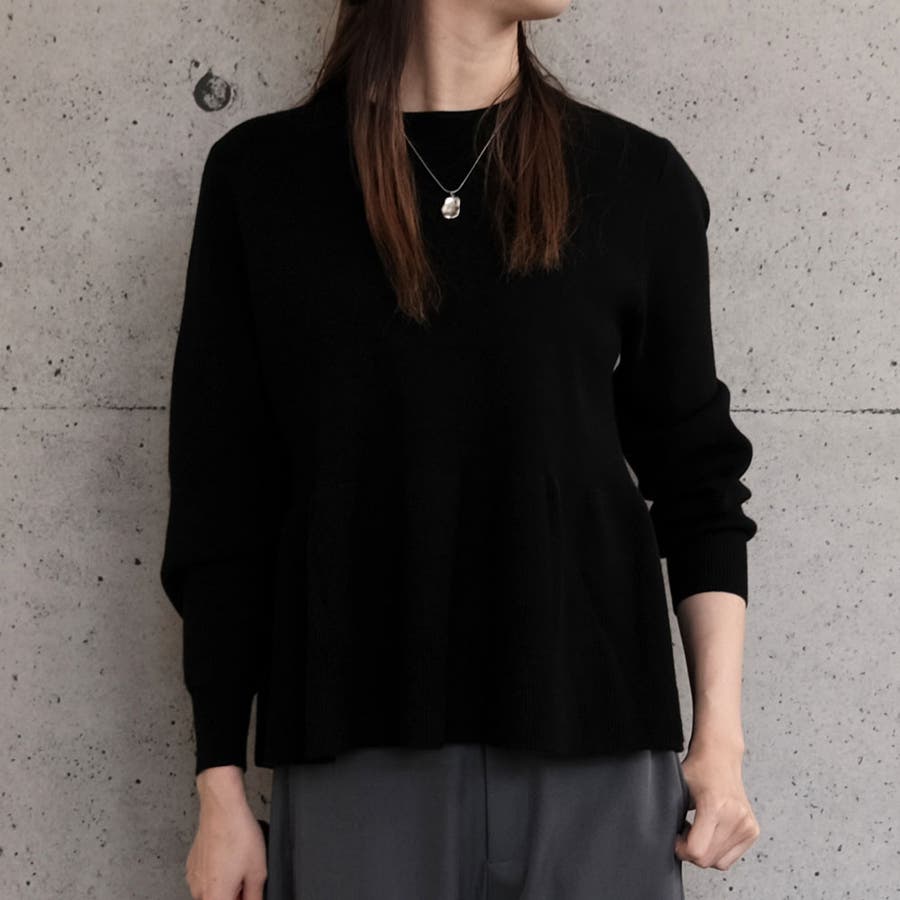 バックパールフレアニットトップス ペプラムニットトップス ペプラムトップス トップス ブラウス レディース 春 夏 M ノーカラー シンプル ベーシック きれいめ クラシック