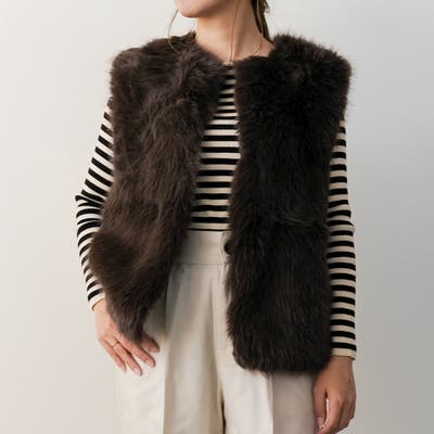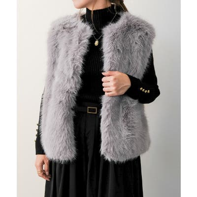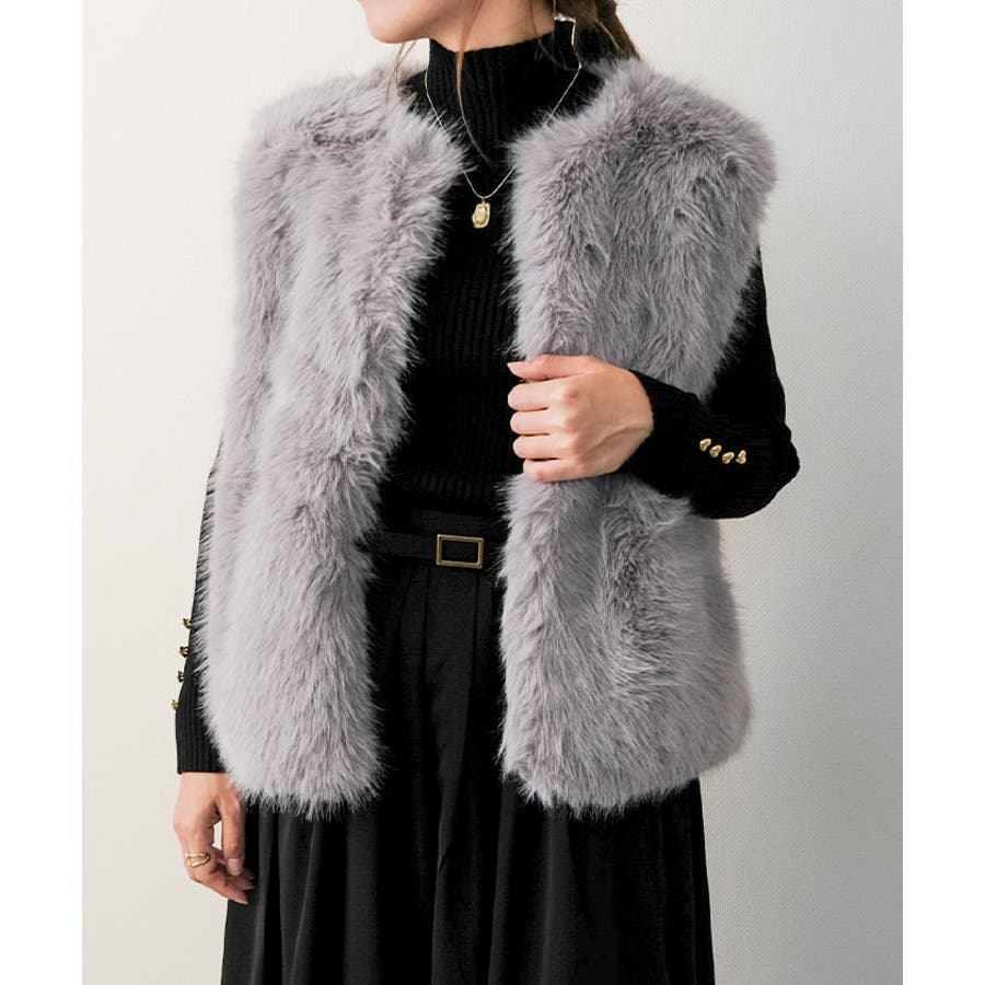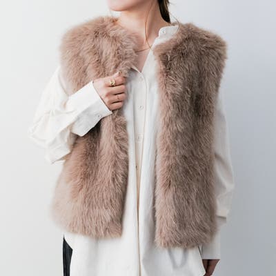 思わず触れたくなるような、ふんわり柔らかなフェイクファーをたっぷりと使用したジレ。