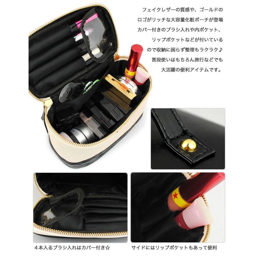 フェイクレザーの質感や、ゴールドのロゴがリッチな大容量化粧ポーチが登場☆