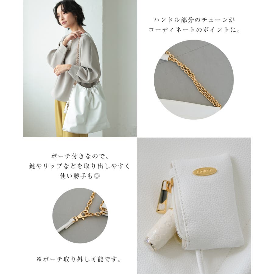 たっぷり大容量で使える♪ポーチ付きチェーントートバッグ