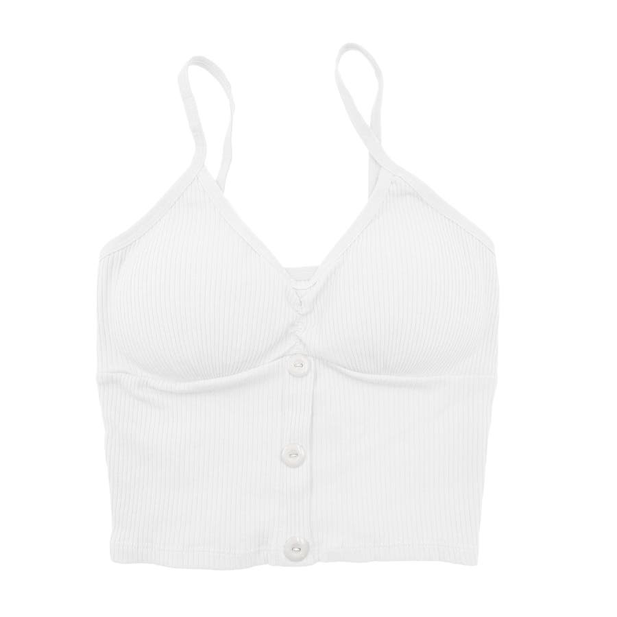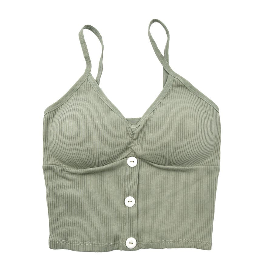 飾りボタンが上品で大人っぽい。ボタンデザインブラトップフロントについたボタンが可愛いカップ付きブラトップ。