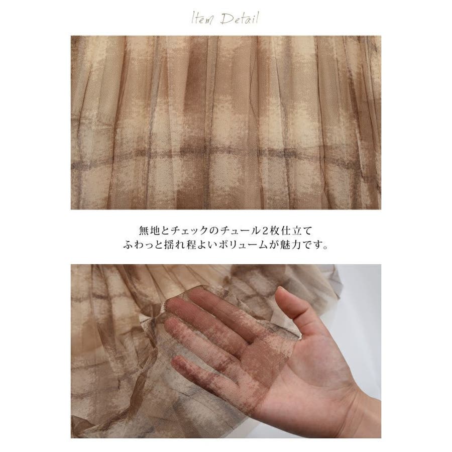 無地とチェックのチュール2枚仕立て!チェックチュールスカート。