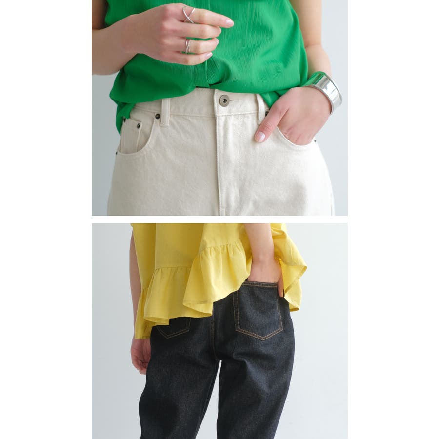 美脚効果が期待できるハイウエスト×テーパードのデニムパンツ。