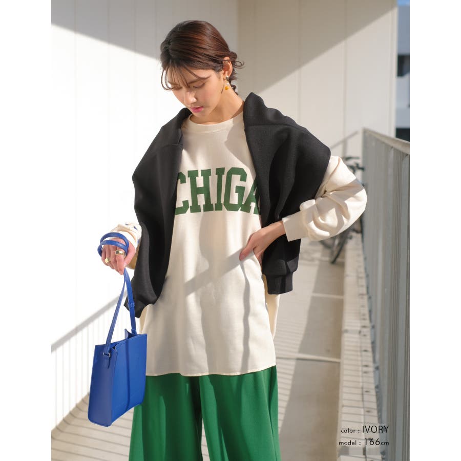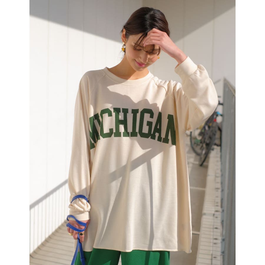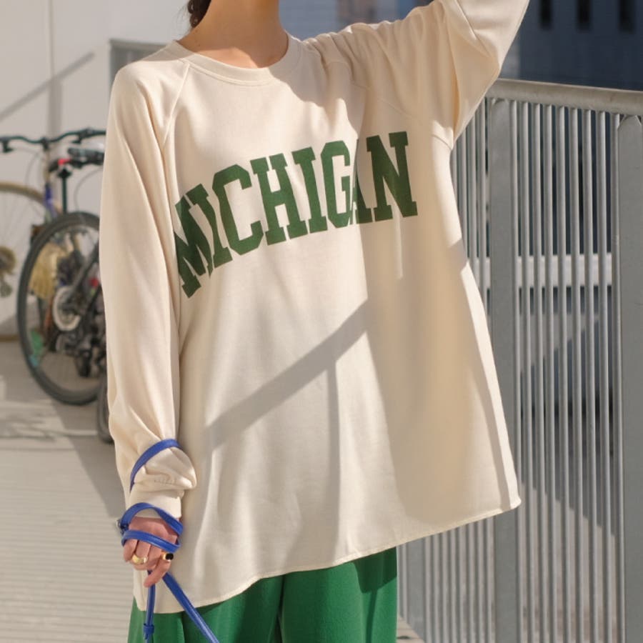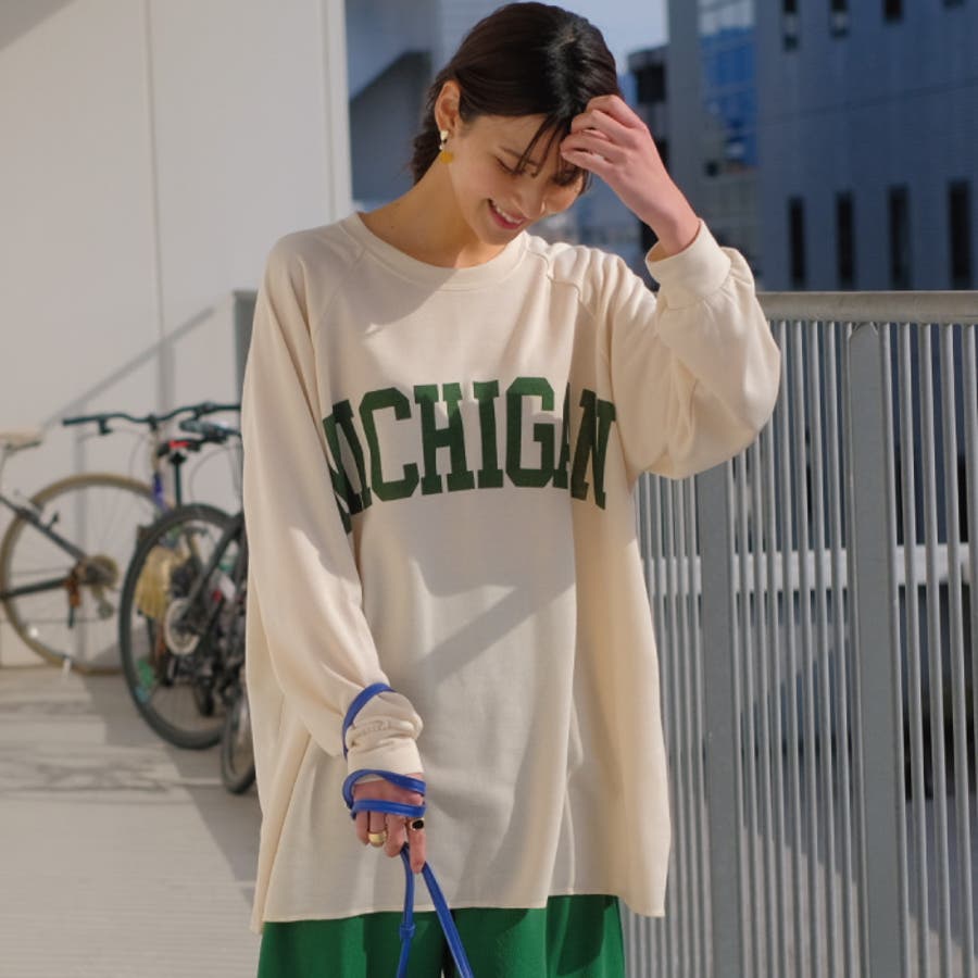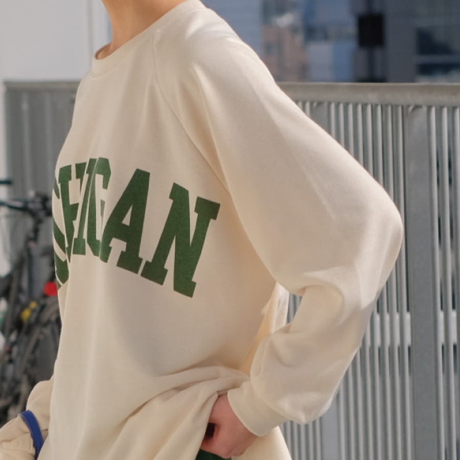 胸元に施した カレッジ調のアーチロゴが印象的な一枚。