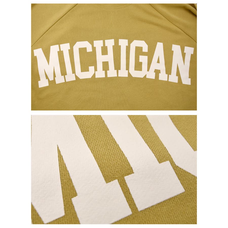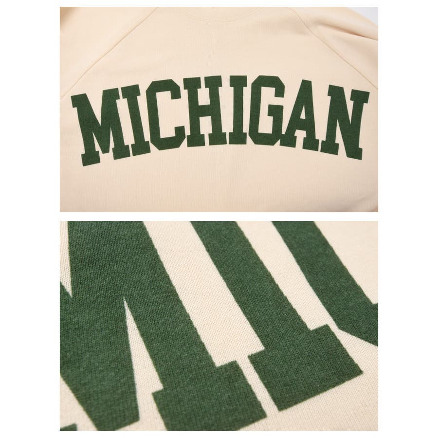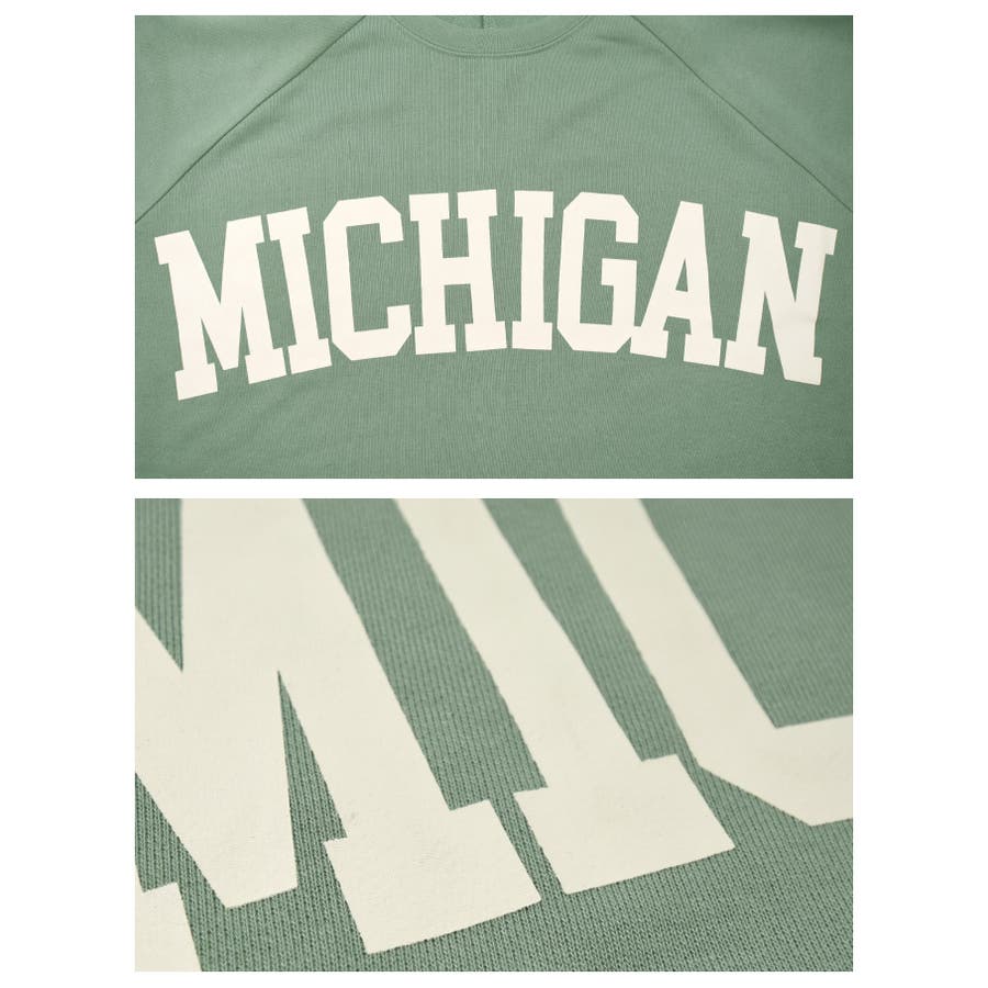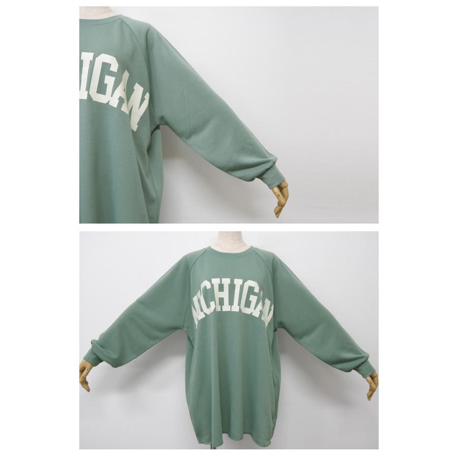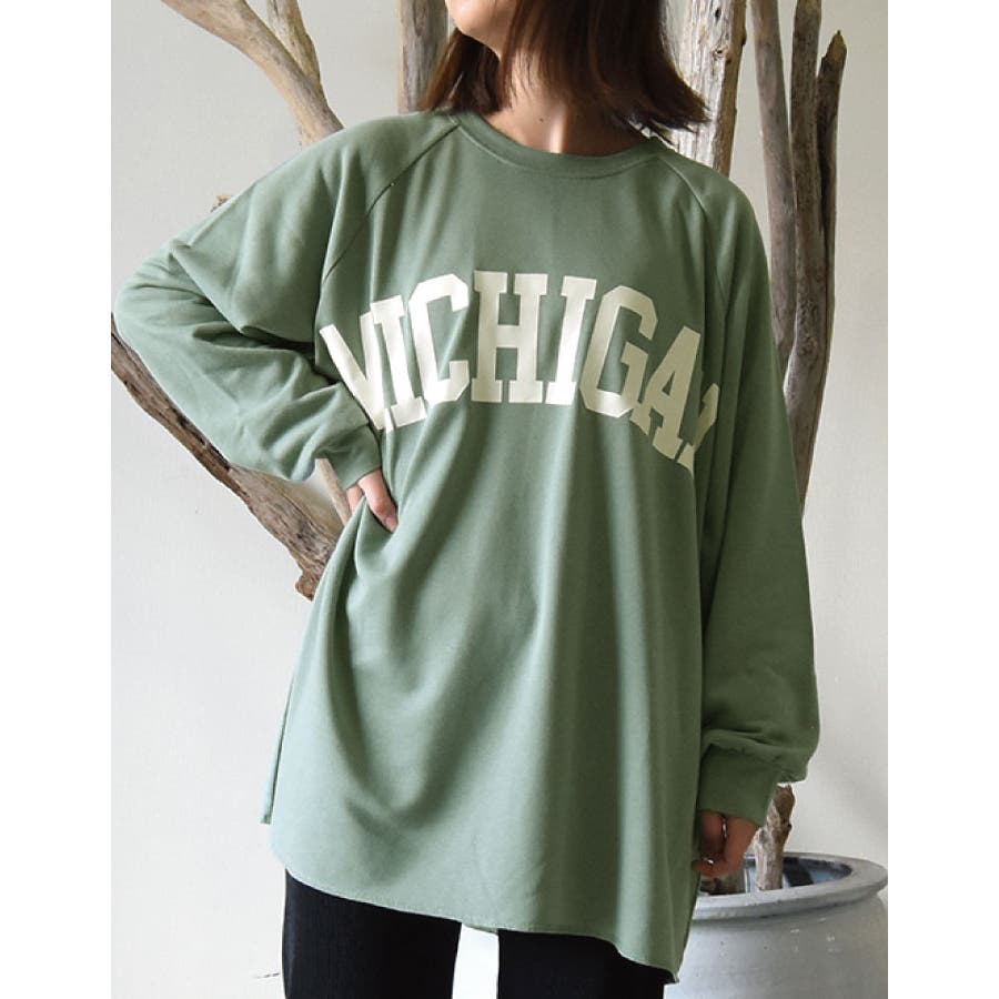胸元に施した カレッジ調のアーチロゴが印象的な一枚。