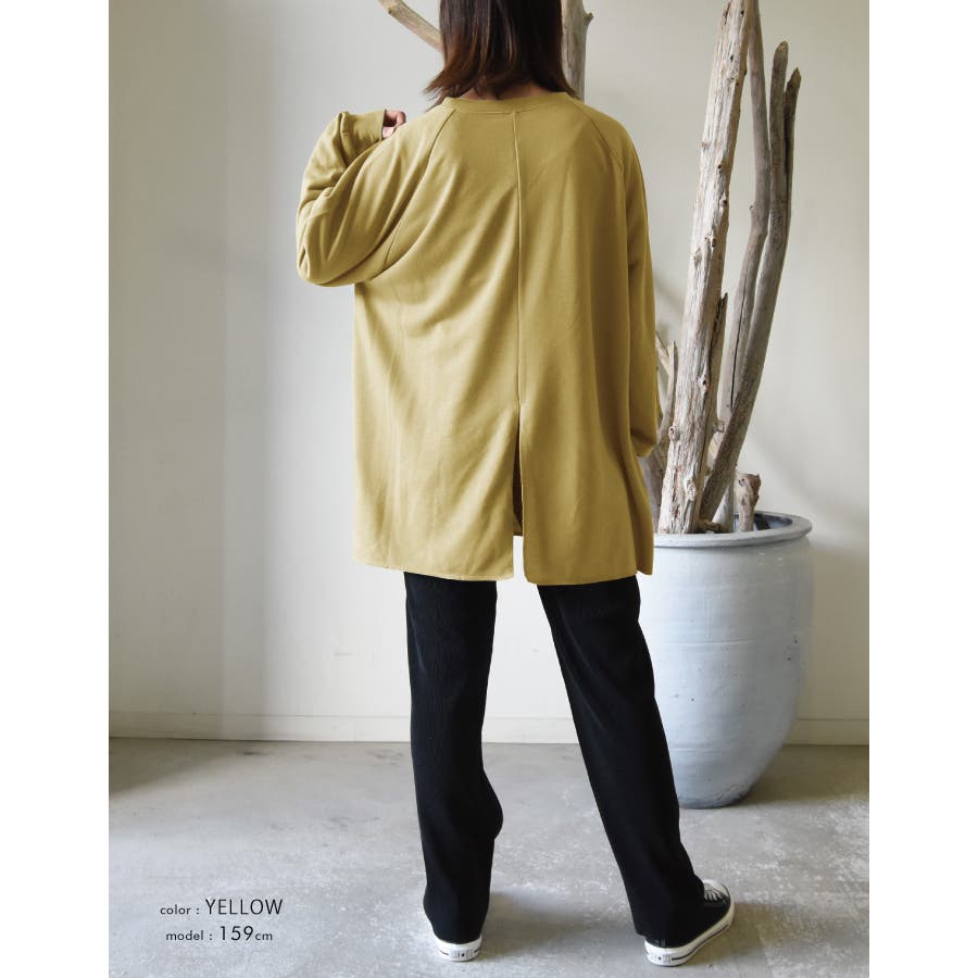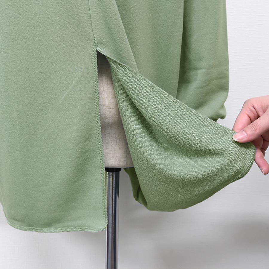裏起毛??の割に薄いです。ロンTとスウェットの間くらいの生地感。ただ、その薄さが使いやすくて良いです。下にタートルを重ねたり、アウターが着やすいです。後ろのスリットも可愛くてお気に入りです。車を運転される方におすすめしたいです。おしりで洋服を引っ張らないので乗り降りしやすいです