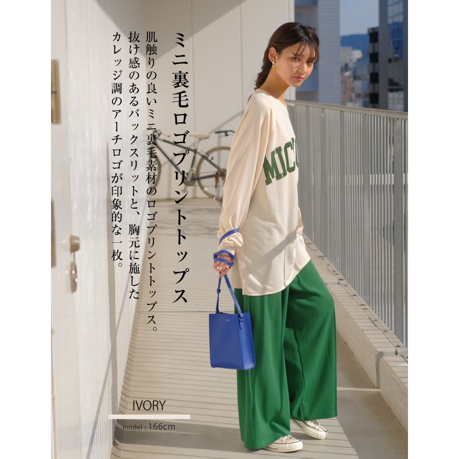 肌触りの良いミニ裏毛素材のロゴプリントトップス