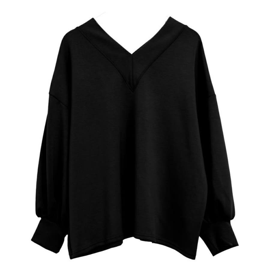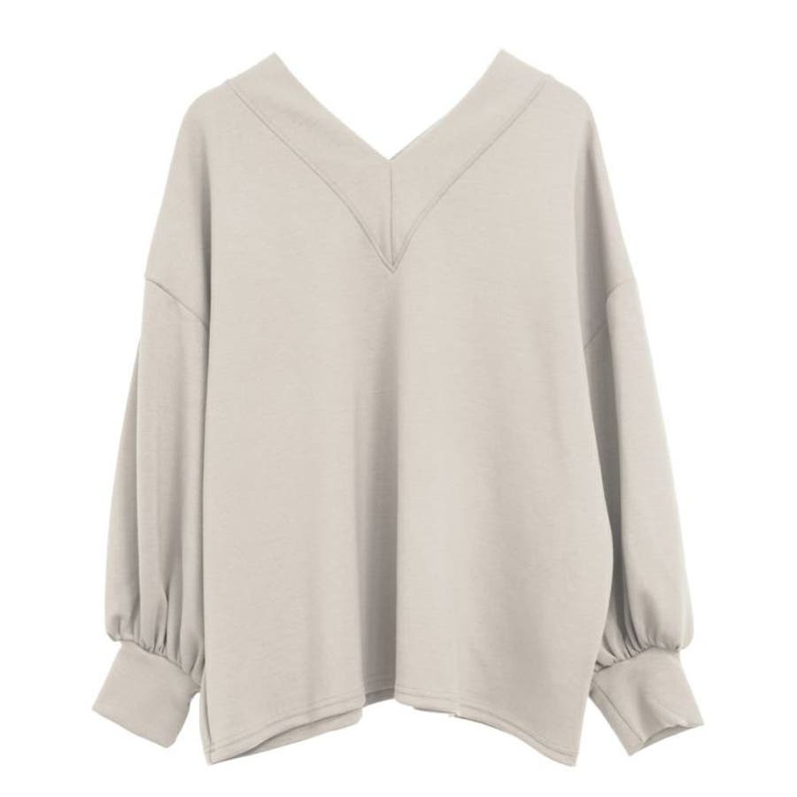 顔・首まわりをすっきり魅せてくれる前後深Vネックトップス。 こなれ感のある大きめなサイズ感で、ゆるっと旬の着こなしに。心地よい肌触りの、滑らかなきれいめポンチ素材を使用しました。