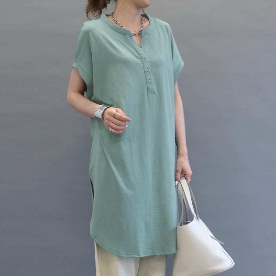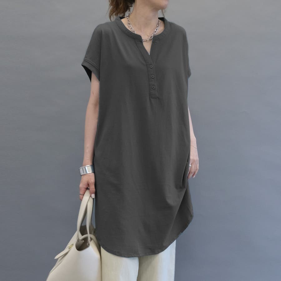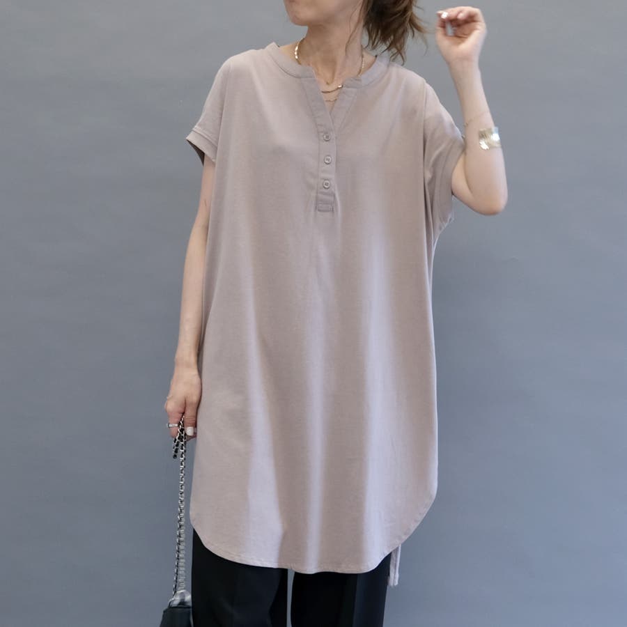 キーネックカットソーチュニック レディース 春 夏 半袖 コットン100% 綿100% Tシャツ ゆるTシャツ ビッグTシャツ プルオーバー フレンチスリーブ キーネック 二の腕カバー 体型カバー 無地 薄手 カジュアル シンプル ビッグシルエット オーバーサイズ ワイド 大きめ 大きいサイズ ゆったり リラックス リラクシング ルームウェア 部屋着 テレワーク リモートワーク おうち服