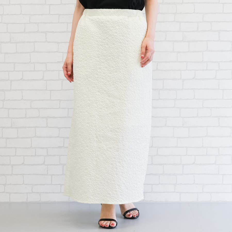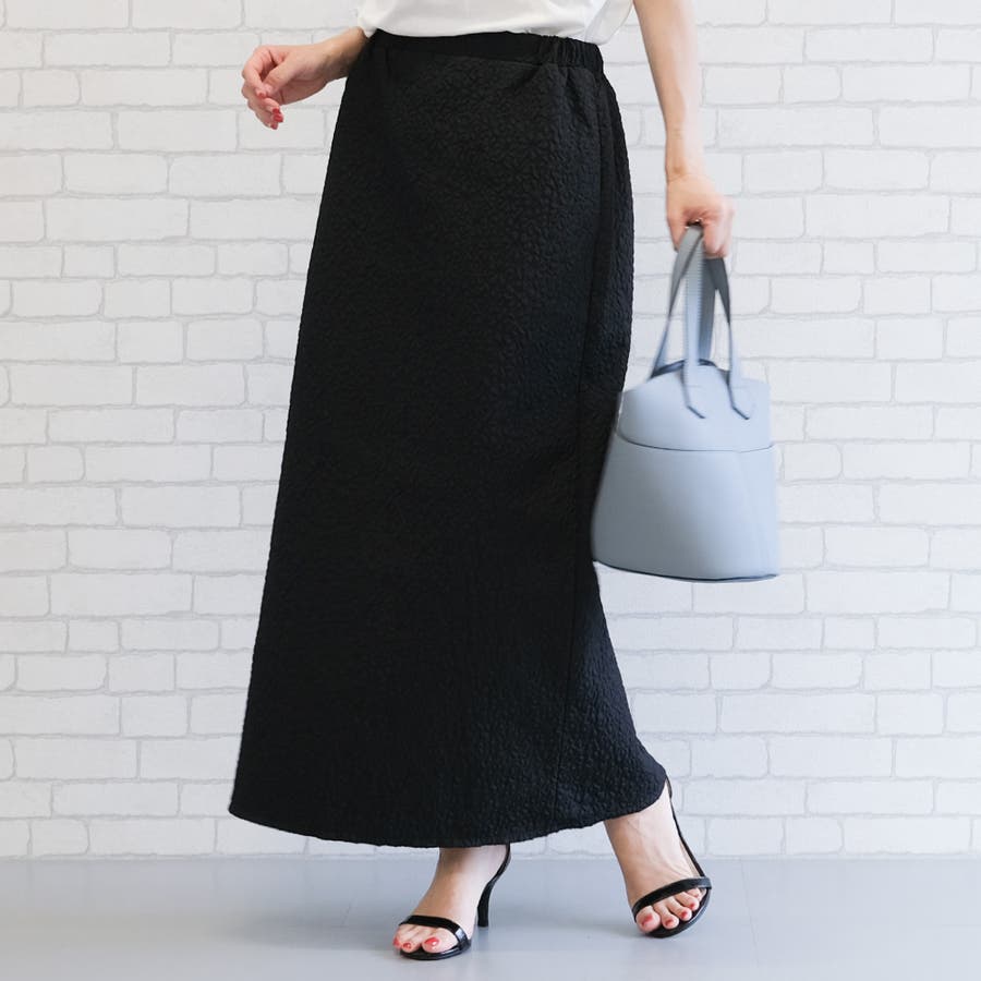凹凸感のある膨れジャガード素材が上品な雰囲気のナロースカート