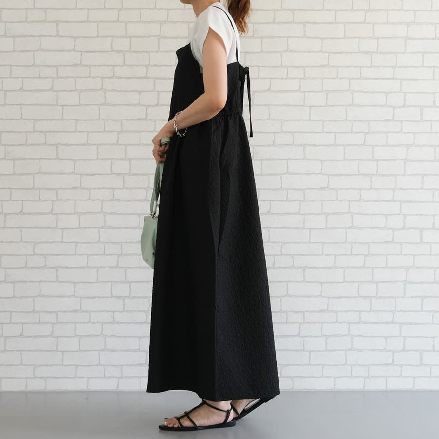 膨れジャガードキャミワンピースキャミワンピ レディース 春 夏 秋 ロング丈 マキシ丈 ジャンスカ サロペット ジャンパースカート オールインワン ロングスカート マキシスカート 無地 シンプル 大人 お洒落 おしゃれ かっこいい レイヤード 重ね着 カジュアル 調節 アジャスター イージーケア シワになりにくい