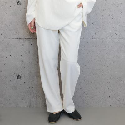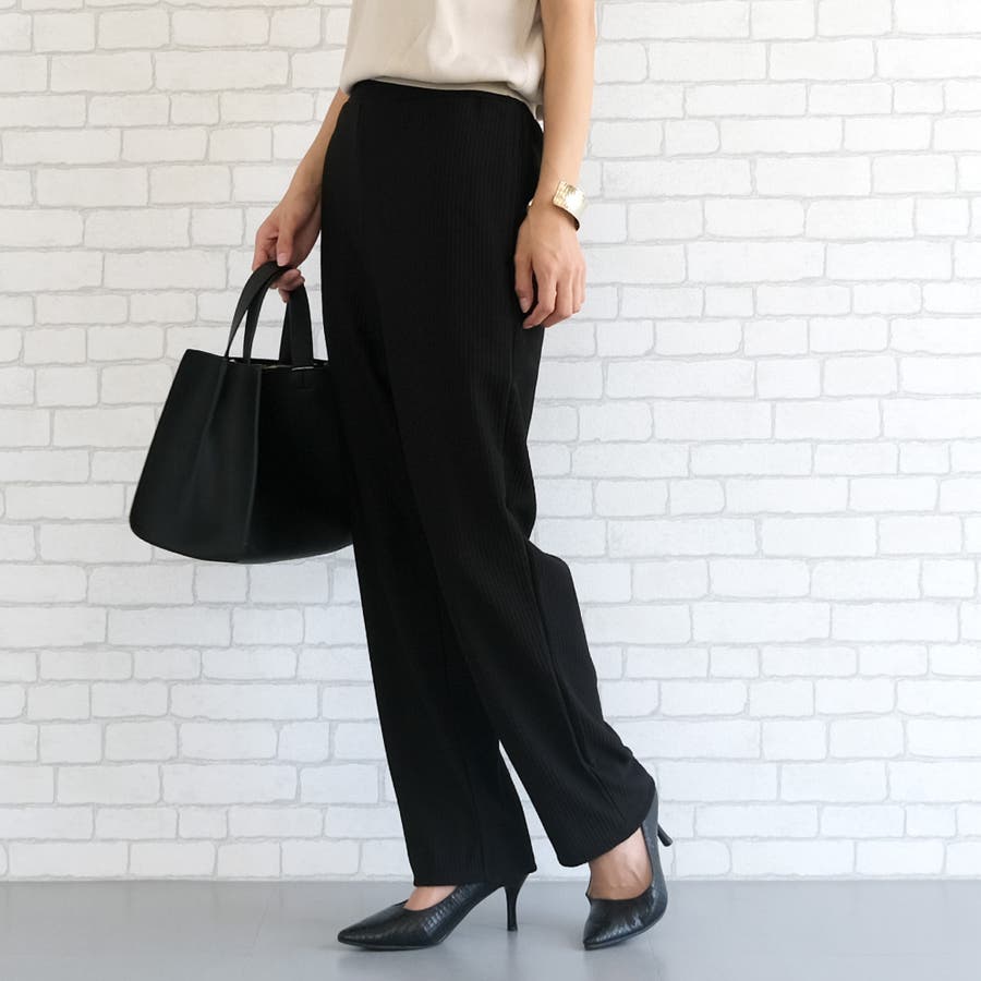 ウエストゴムリブストレートパンツ ストレートパンツ レディース ボトムス パンツ リブパンツ プリーツパンツ ロング丈 ウエストゴム 春 夏 カジュアル きれいめ シンプル 脚長効果 スタイルアップ ルームウエア ワンマイルウエア 部屋着 リラックスパンツ イージーパンツ リラックス リラクシング