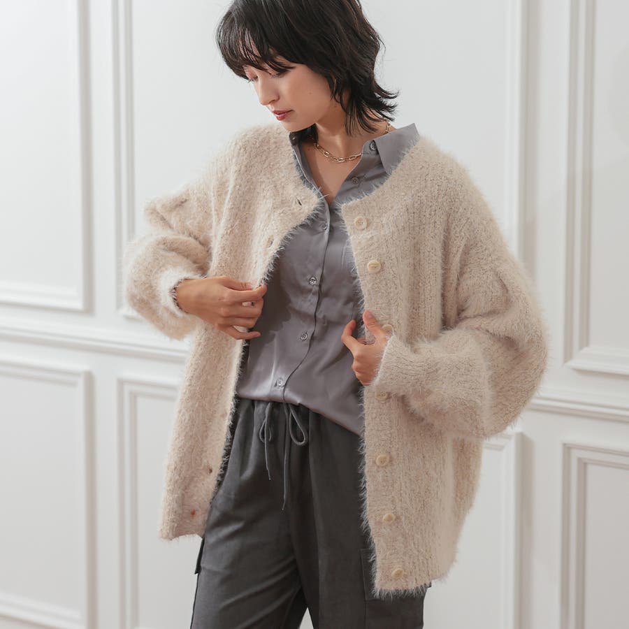 ネップ入りシャギーヤーン起毛カーディガン シャギーカーディガン ボア カーディガン ファー レディース ジャケット アウター ライトアウター ブルゾン ボアカーディガン ファーカーディガン トップス 羽織り フェイクファー ノーカラー ゆったり オーバーサイズ トッパートッパーカーディガン 無地 おしゃれ かわいい ボリューム トレンド 秋冬 ボアコート モヘア モヘヤ ショート丈 2way
