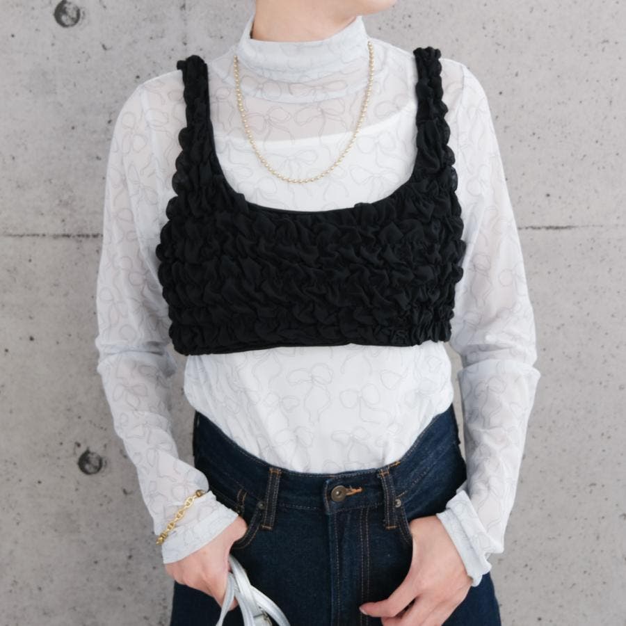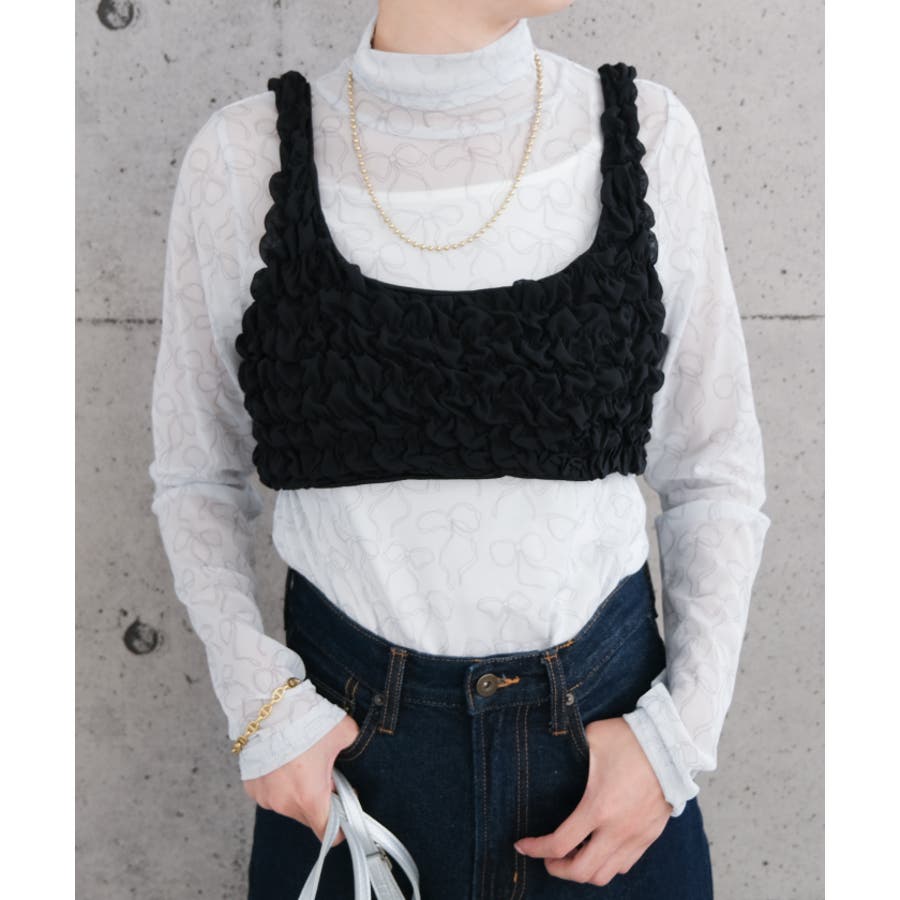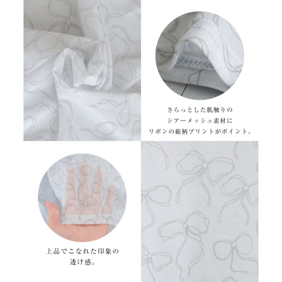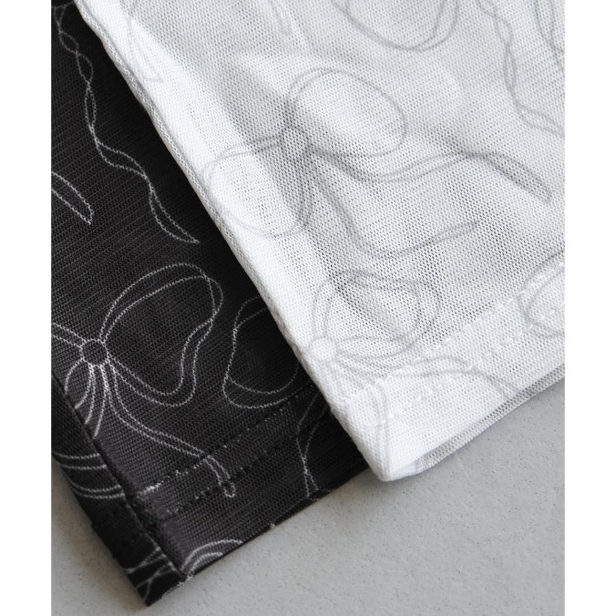 リボン柄プリントの総柄が目を惹く、シアートップス