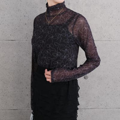 リボン柄シアートップス シアーニット シアーカットソー トップス インナー 重ね着 レディース M パワーネットカットソー シアー メロー 着回し ストレッチ 二の腕カバー 春 夏 秋 カジュアル 旅行 大人女子 可愛い シアートップス シアーニット シアーカットソー トップス インナー 重ね着 レディース M 長袖 パワーネットカットソー シアー メロー 着回し ストレッチ 二の腕カバー 春 夏 秋 カジュアル 旅行 大人女子 可愛い シアートップス レイヤード トレンド ボトルネック