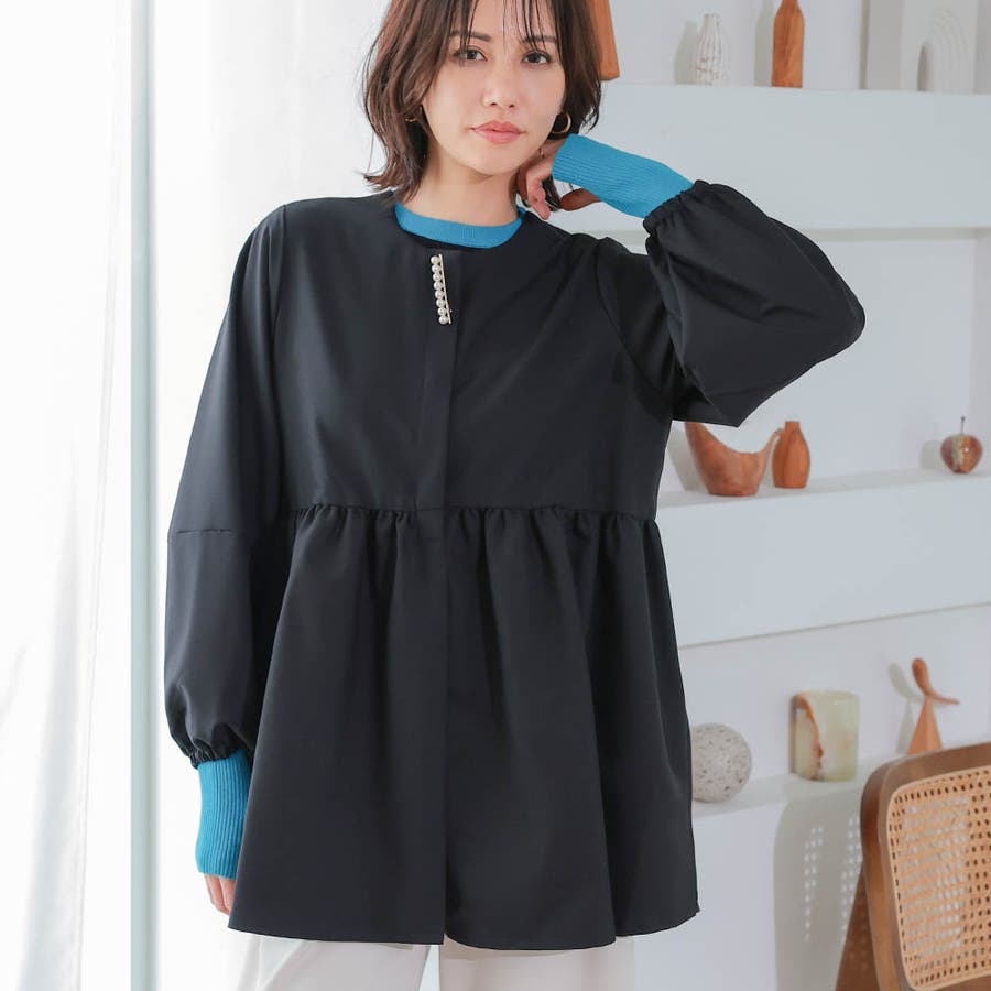 前開きタイプなので着用しやすさをと甘くなりやすいペプラムシルエットもフロント開きで少しシャープな印象に導きます。