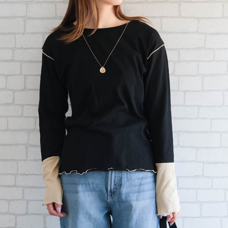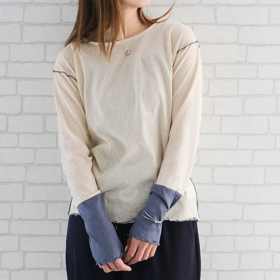配色シアーニットソーベロアシアートップス トップス ニット レディース 春 秋 冬 M カットソー 長袖 リブ 無地 ガーリー フェミニン カジュアル シンプル セーター ベーシック コンパクト 華奢魅せ きれいめ 細身 タイト シアー