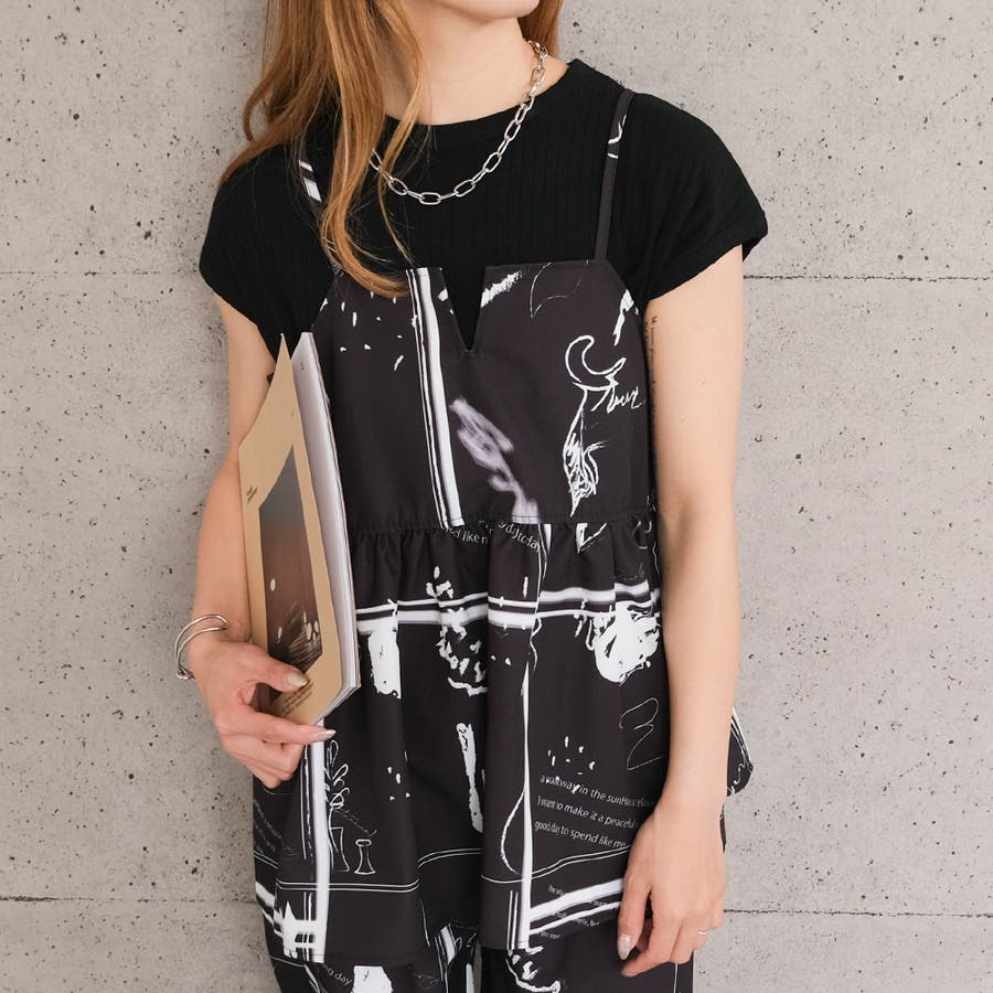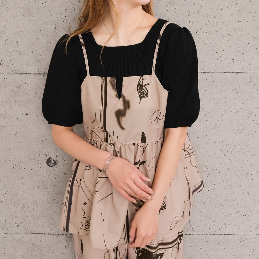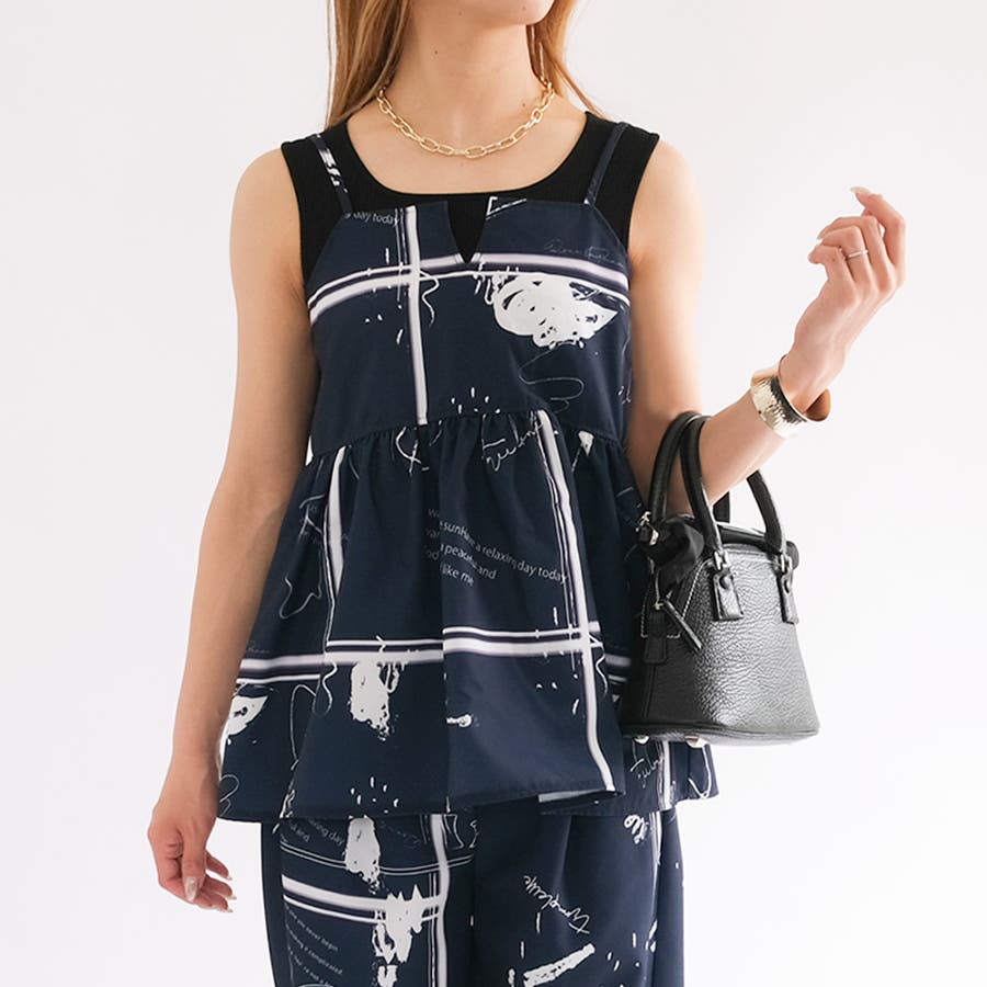 英字柄ペプラムキャミソール トップス レディース 春 夏 秋 M ガーリー フェミニン カジュアル シンプル ベーシック コンパクト 華奢魅せ きれいめ 体型カバー レイヤード 重ね着 ビスチェ ペプラム セットアップ