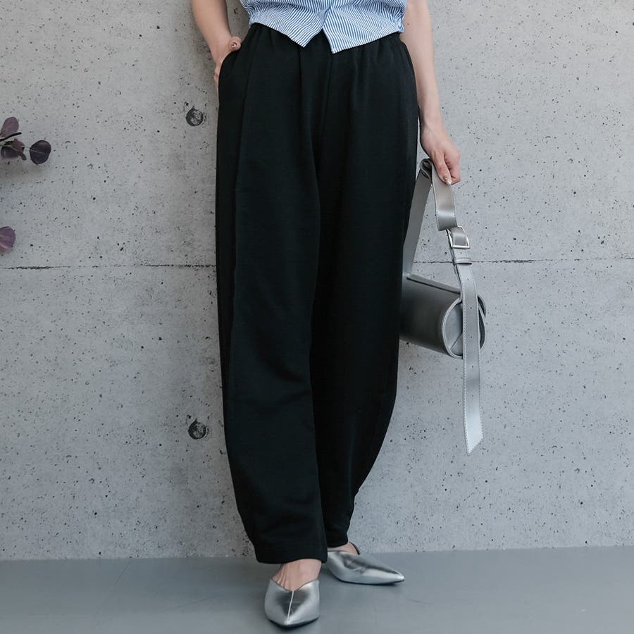 ゆったりしたストレートラインで脚のラインを拾いすぎず、体型カバーも叶えます。