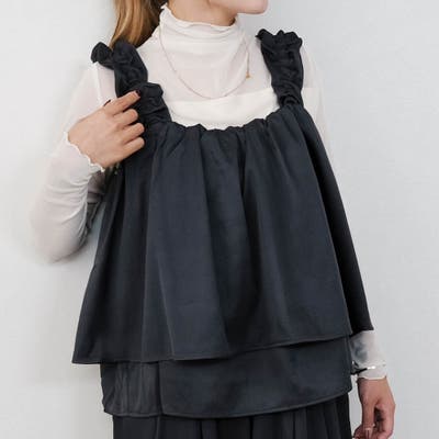 フリルギャザートップス レディース 春 夏 秋 M ガーリー フェミニン カジュアル シンプル ベーシック コンパクト 華奢魅せ きれいめ 体型カバー レイヤード 重ね着 ビスチェ ペプラム タンクトップ キャミソール