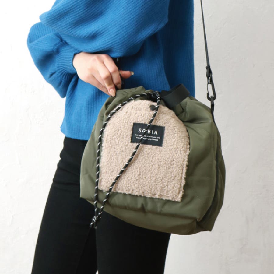 ウェーブキルトとボア素材の組み合わせが可愛いショルダーバッグ。ドロスト仕様で用途に合わせて形が変えられる2way仕様。 マチが広く、内側に大きめポケットが2つ付いているので収納力も◎ショルダーベルトは、長さ調節・取り外しも可能です。