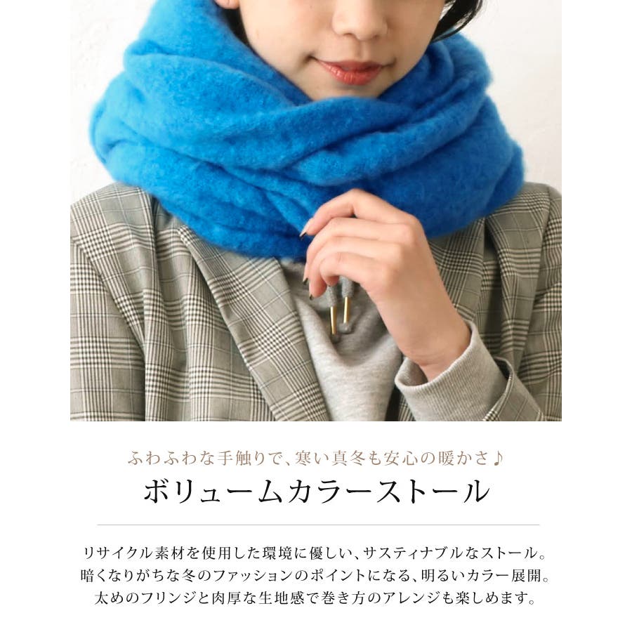ふわふわな手触りで、寒い真冬も安心の暖かさ♪ボリュームカラーストール