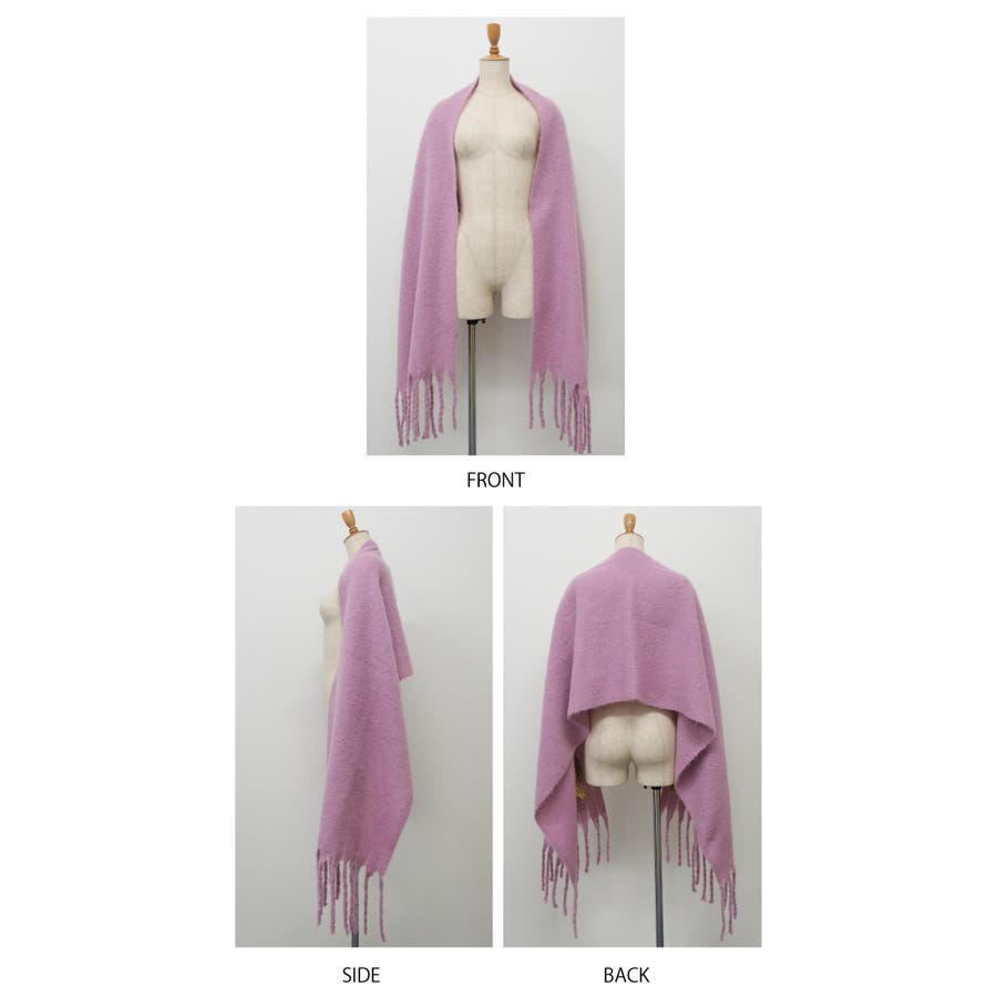 リサイクル素材を使用した環境に優しい、サスティナブルなストール。 暗くなりがちな冬のファッションのポイントになる、明るいカラー展開!太めのフリンジと肉厚な生地感で巻き方のアレンジも楽しめます。