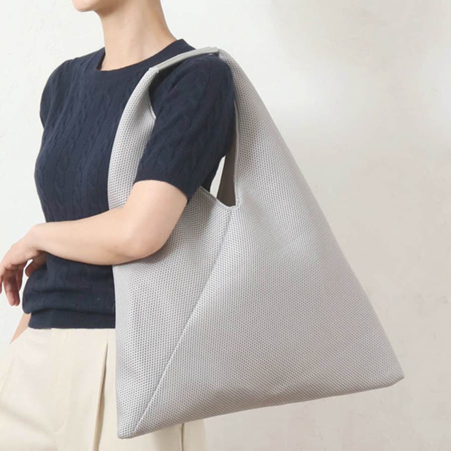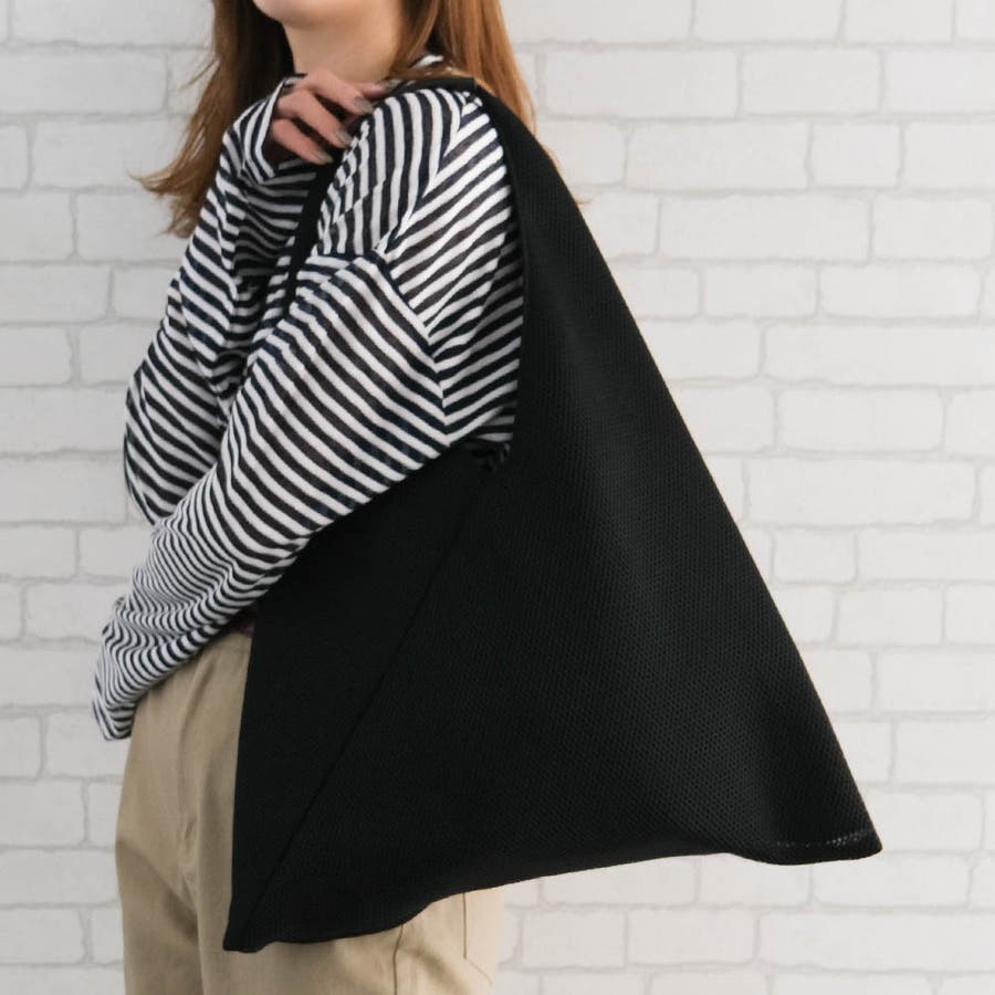 スタイリッシュなデザインのメッシュサンカクトートバッグ