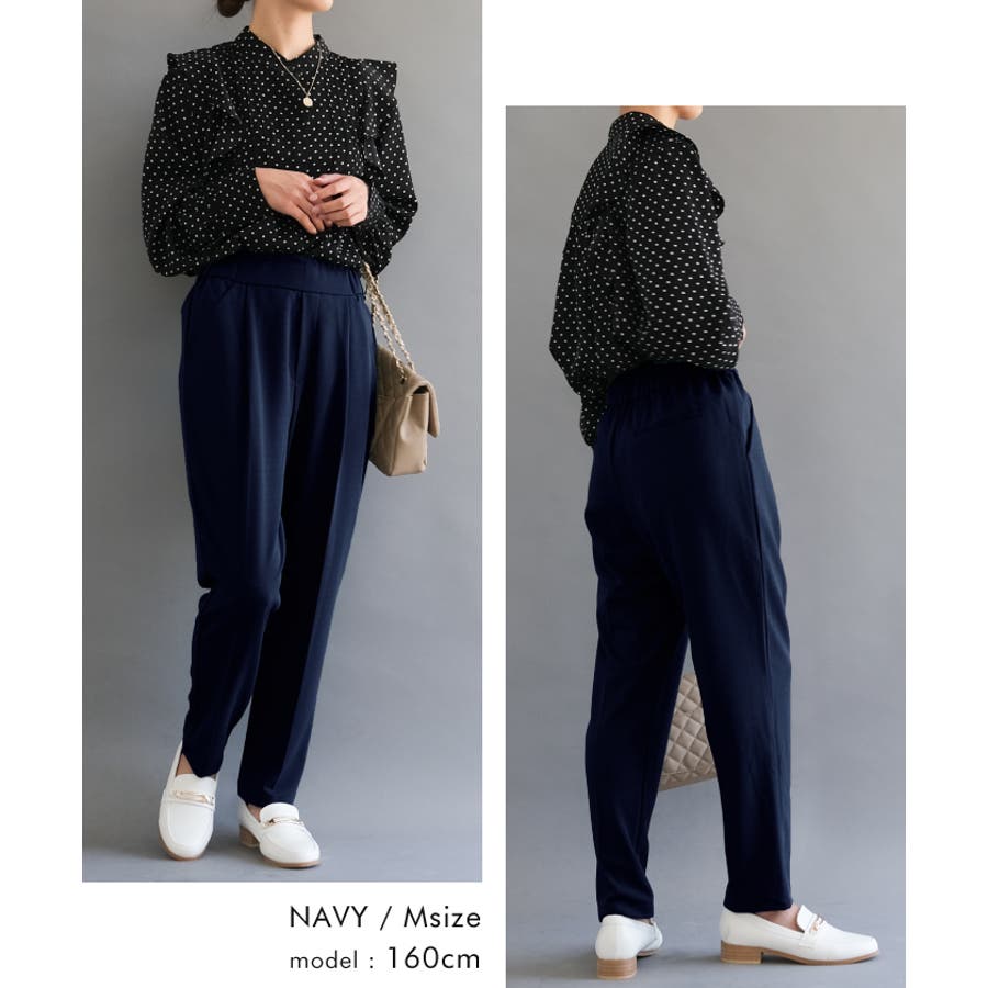 センタープレステーパードパンツ テーパードパンツ センタープレス レディース 上品 きれいめ シンプル ベーシック ビジネス オフィスウェア オフィスカジュアル 通勤 美脚 脚長効果 体型カバー ウエストゴム