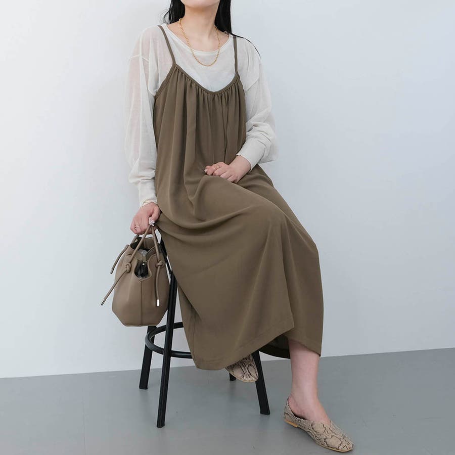 さらさらエアリーキャミワンピース キャミワンピ ワンピース レディース 春 夏 秋 ロング丈 マキシ丈 ジャンスカ サロペット ジャンパースカート オールインワン ロングスカート マキシスカート 無地 シンプル 大人 お洒落 おしゃれ かっこいい レイヤード 重ね着 カジュアル 調節 アジャスター 体型カバー