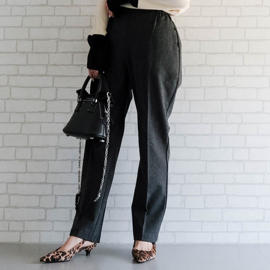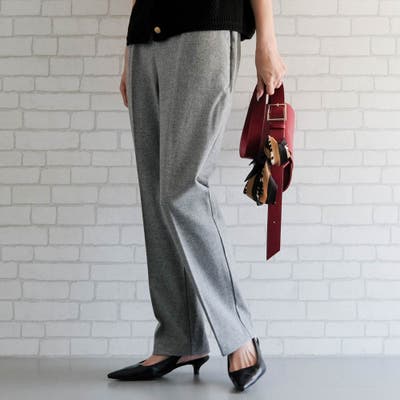 上品な印象を漂わせる、ウール調素材のテーパードパンツ。