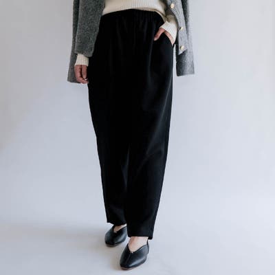 ゆったりとした腰まわりから裾にかけて自然に細くなる丸みのあるシルエットが特徴で、